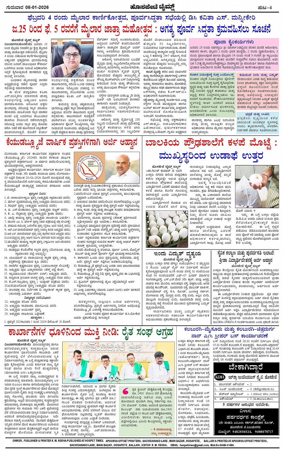 ಮಾಧ್ಯಮ ಅಕಾಡೆಮಿ ಪ್ರಶಸ್ತಿ ಪುರಸ್ಕೃತ 'ಹೊಸಪೇಟೆ ಟೈಮ್ಸ್' Page: 4 January 08, 2026 << First << 4 >> Last >> Page 1Page 2Page 3Page 4 × ಮಾಧ್ಯಮ ಅಕಾಡೆಮಿ ಪ್ರಶಸ್ತಿ ಪುರಸ್ಕೃತ 'ಹೊಸಪೇಟೆ ಟೈಮ್ಸ್' HPT-08012026-4-page-001HPT-08012026-4-page-002HPT-08012026-4-page-003HPT-08012026-4-page-004 << First << 4 >> Last >> HPT-08012026-4-page-001HPT-08012026-4-page-002HPT-08012026-4-page-003HPT-08012026-4-page-004 HPT-08012026-4-page-004