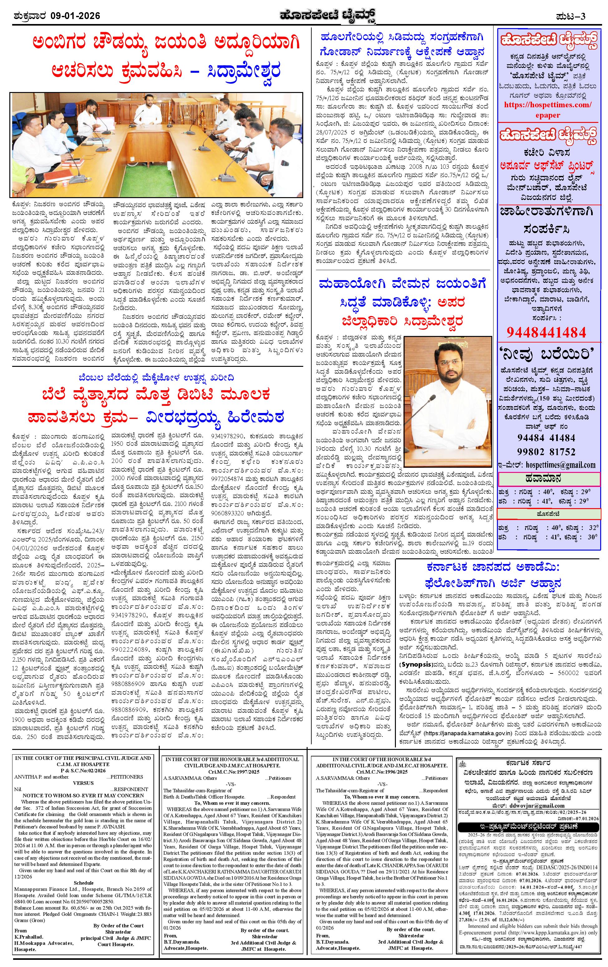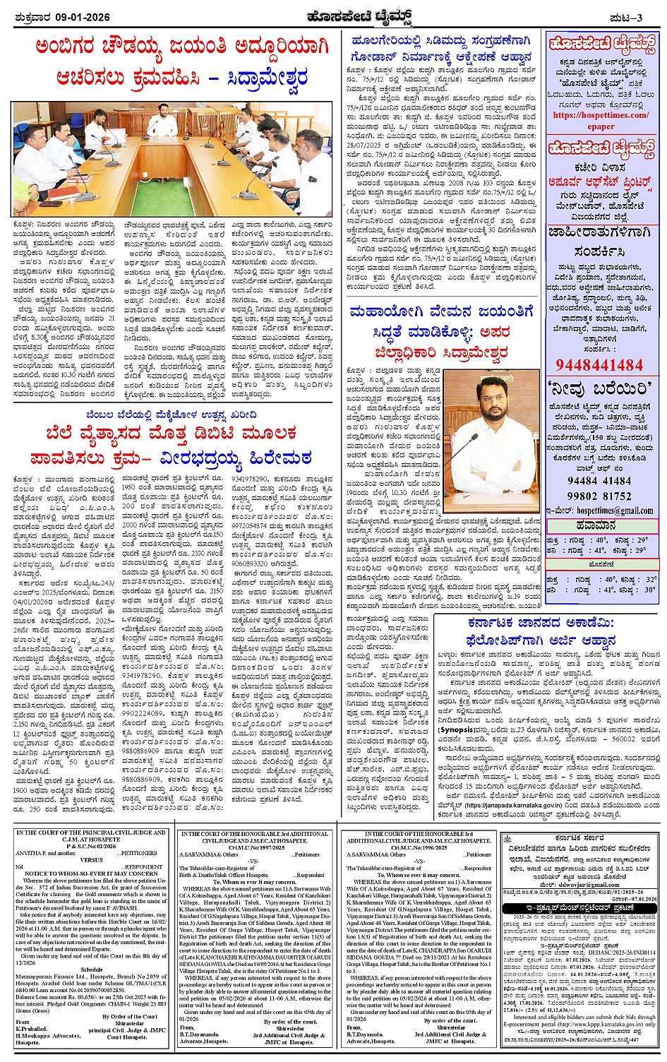 ಮಾಧ್ಯಮ ಅಕಾಡೆಮಿ ಪ್ರಶಸ್ತಿ ಪುರಸ್ಕೃತ 'ಹೊಸಪೇಟೆ ಟೈಮ್ಸ್' Page: 3 January 09, 2026 << First << 3 >> Last >> Page 1Page 2Page 3Page 4 × ಮಾಧ್ಯಮ ಅಕಾಡೆಮಿ ಪ್ರಶಸ್ತಿ ಪುರಸ್ಕೃತ 'ಹೊಸಪೇಟೆ ಟೈಮ್ಸ್' HPT-09012026-4-page-001HPT-09012026-4-page-002HPT-09012026-4-page-003HPT-09012026-4-page-004 << First << 3 >> Last >> HPT-09012026-4-page-001HPT-09012026-4-page-002HPT-09012026-4-page-003HPT-09012026-4-page-004 HPT-09012026-4-page-003