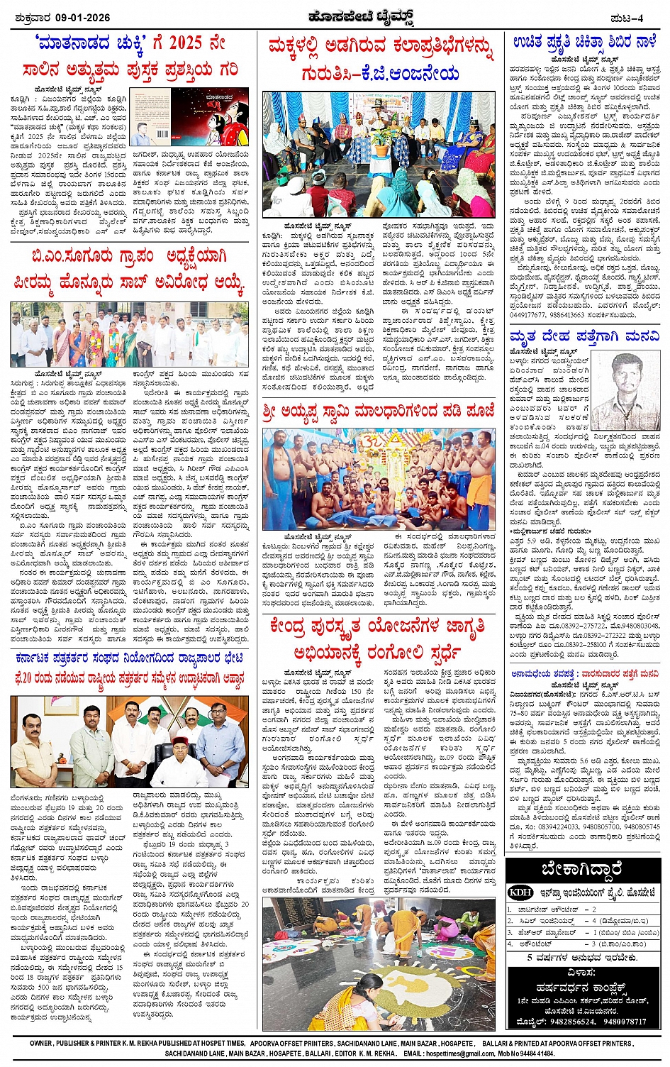 ಮಾಧ್ಯಮ ಅಕಾಡೆಮಿ ಪ್ರಶಸ್ತಿ ಪುರಸ್ಕೃತ 'ಹೊಸಪೇಟೆ ಟೈಮ್ಸ್' Page: 4 January 09, 2026 << First << 4 >> Last >> Page 1Page 2Page 3Page 4 × ಮಾಧ್ಯಮ ಅಕಾಡೆಮಿ ಪ್ರಶಸ್ತಿ ಪುರಸ್ಕೃತ 'ಹೊಸಪೇಟೆ ಟೈಮ್ಸ್' HPT-09012026-4-page-001HPT-09012026-4-page-002HPT-09012026-4-page-003HPT-09012026-4-page-004 << First << 4 >> Last >> HPT-09012026-4-page-001HPT-09012026-4-page-002HPT-09012026-4-page-003HPT-09012026-4-page-004 HPT-09012026-4-page-004