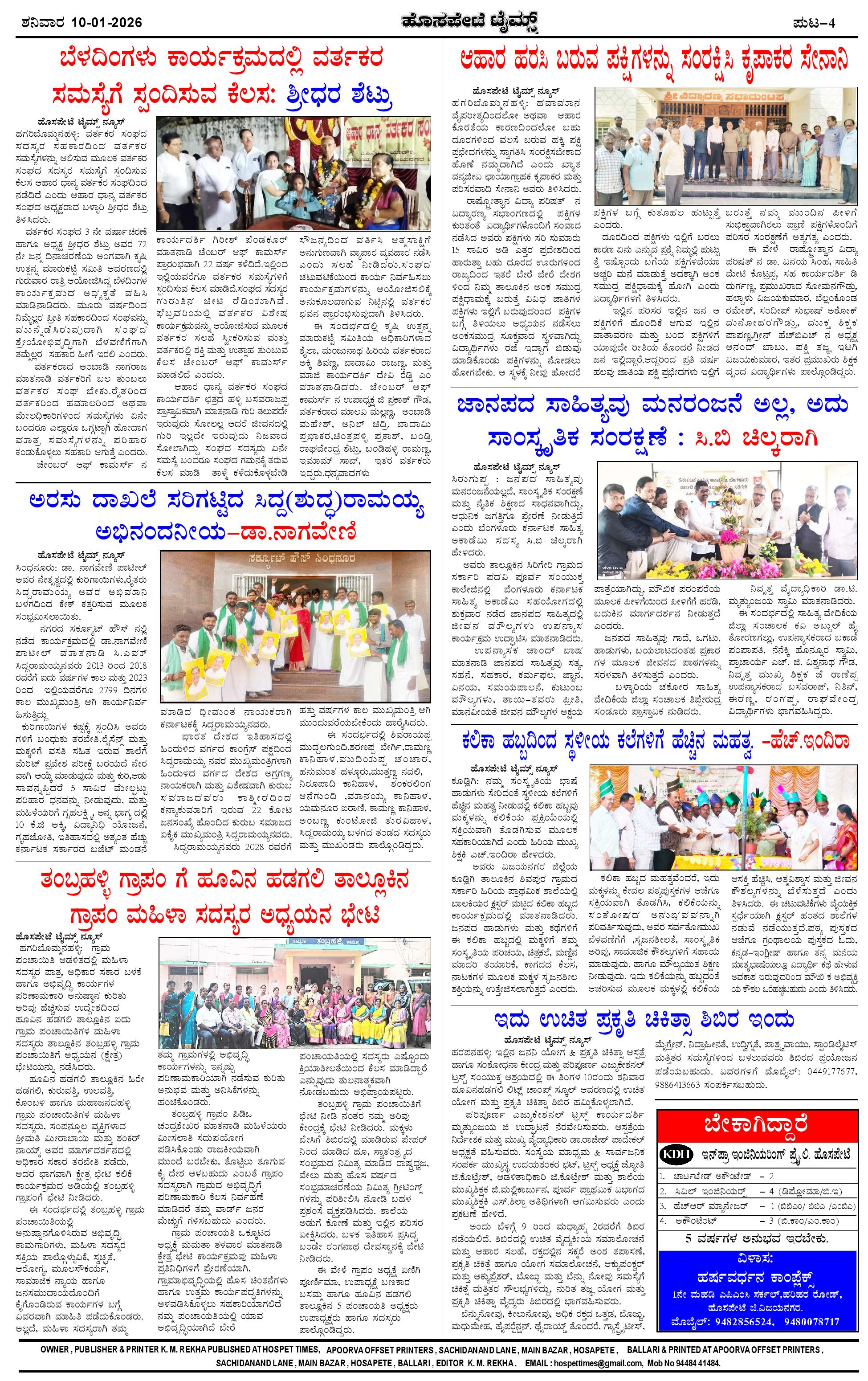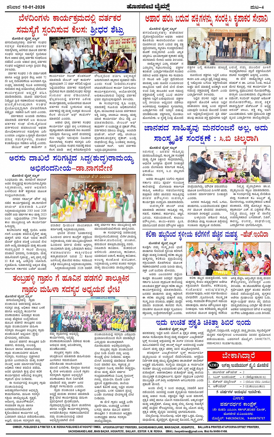 ಮಾಧ್ಯಮ ಅಕಾಡೆಮಿ ಪ್ರಶಸ್ತಿ ಪುರಸ್ಕೃತ 'ಹೊಸಪೇಟೆ ಟೈಮ್ಸ್' Page: 4 January 10, 2026 << First << 4 >> Last >> Page 1Page 2Page 3Page 4 × ಮಾಧ್ಯಮ ಅಕಾಡೆಮಿ ಪ್ರಶಸ್ತಿ ಪುರಸ್ಕೃತ 'ಹೊಸಪೇಟೆ ಟೈಮ್ಸ್' HPT-10012026--4-page-001HPT-10012026--4-page-002HPT-10012026--4-page-003HPT-10012026--4-page-004 << First << 4 >> Last >> HPT-10012026--4-page-001HPT-10012026--4-page-002HPT-10012026--4-page-003HPT-10012026--4-page-004 HPT-10012026--4-page-004