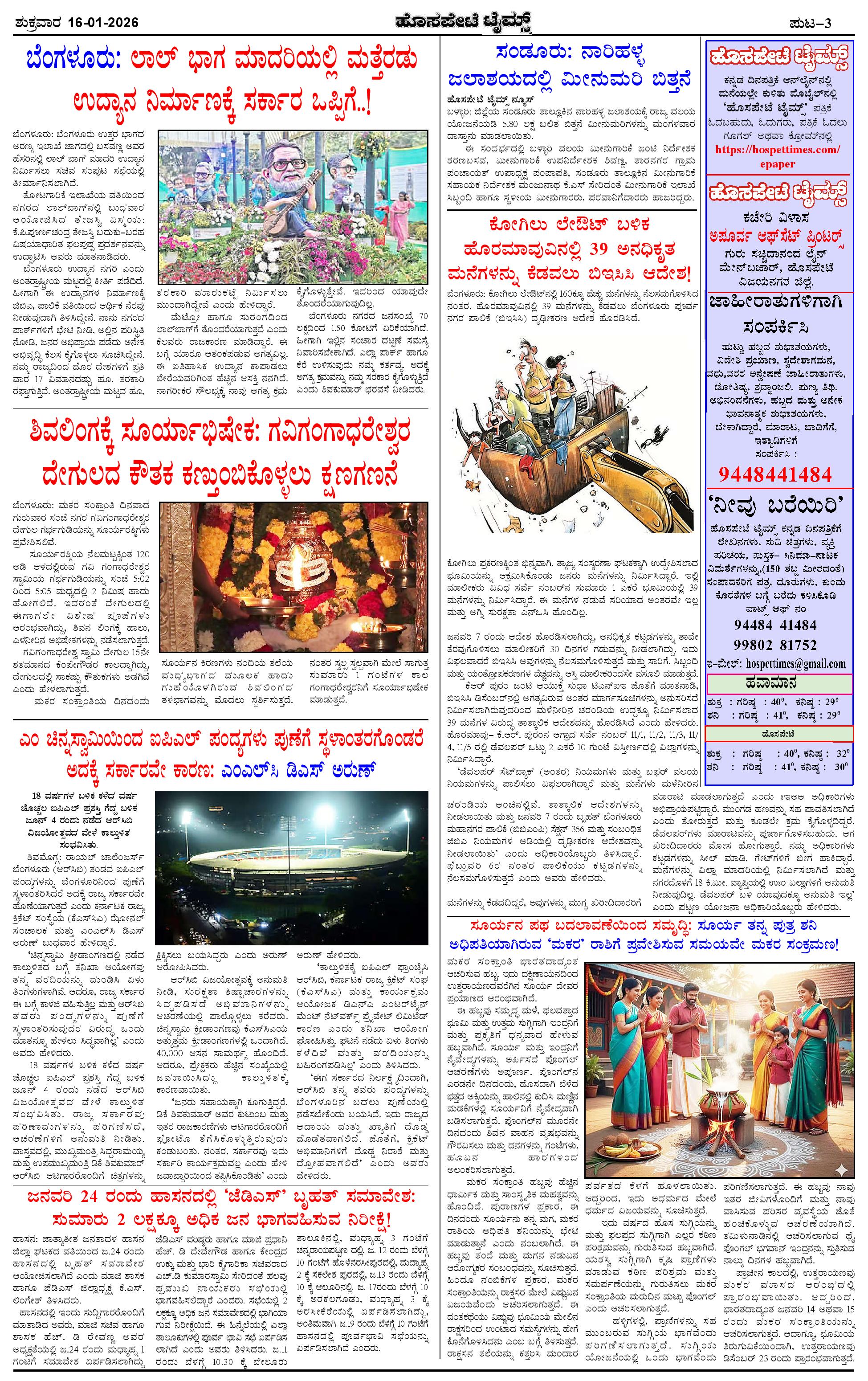 ಮಾಧ್ಯಮ ಅಕಾಡೆಮಿ ಪ್ರಶಸ್ತಿ ಪುರಸ್ಕೃತ 'ಹೊಸಪೇಟೆ ಟೈಮ್ಸ್' Page: 3 January 16, 2026 << First << 3 >> Last >> Page 1Page 2Page 3Page 4 × ಮಾಧ್ಯಮ ಅಕಾಡೆಮಿ ಪ್ರಶಸ್ತಿ ಪುರಸ್ಕೃತ 'ಹೊಸಪೇಟೆ ಟೈಮ್ಸ್' HPT-16012026--4-page-001HPT-16012026--4-page-002HPT-16012026--4-page-003HPT-16012026--4-page-004 << First << 3 >> Last >> HPT-16012026--4-page-001HPT-16012026--4-page-002HPT-16012026--4-page-003HPT-16012026--4-page-004 HPT-16012026--4-page-003