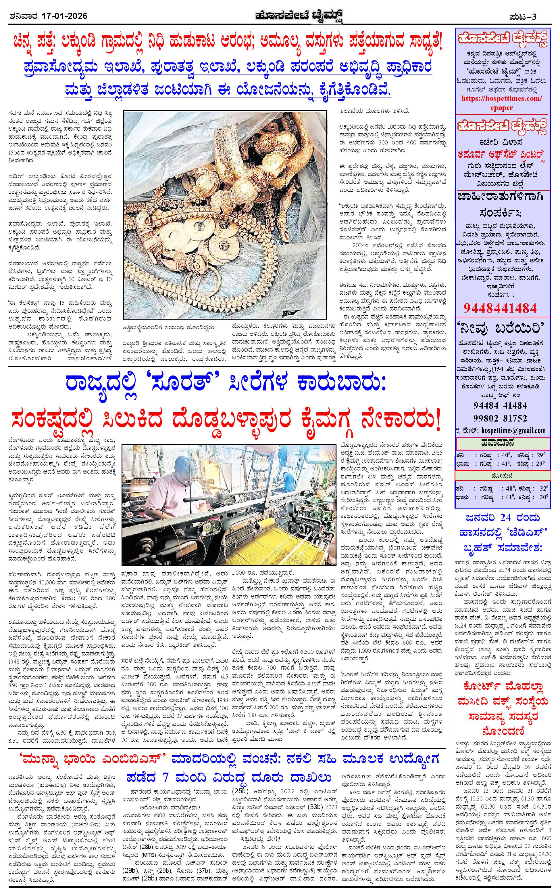 ಮಾಧ್ಯಮ ಅಕಾಡೆಮಿ ಪ್ರಶಸ್ತಿ ಪುರಸ್ಕೃತ 'ಹೊಸಪೇಟೆ ಟೈಮ್ಸ್' Page: 3 January 17, 2026 << First << 3 >> Last >> Page 1Page 2Page 3Page 4 × ಮಾಧ್ಯಮ ಅಕಾಡೆಮಿ ಪ್ರಶಸ್ತಿ ಪುರಸ್ಕೃತ 'ಹೊಸಪೇಟೆ ಟೈಮ್ಸ್' HPT-17012026--4-page-001HPT-17012026--4-page-002HPT-17012026--4-page-003HPT-17012026--4-page-004 << First << 3 >> Last >> HPT-17012026--4-page-001HPT-17012026--4-page-002HPT-17012026--4-page-003HPT-17012026--4-page-004 HPT-17012026--4-page-003