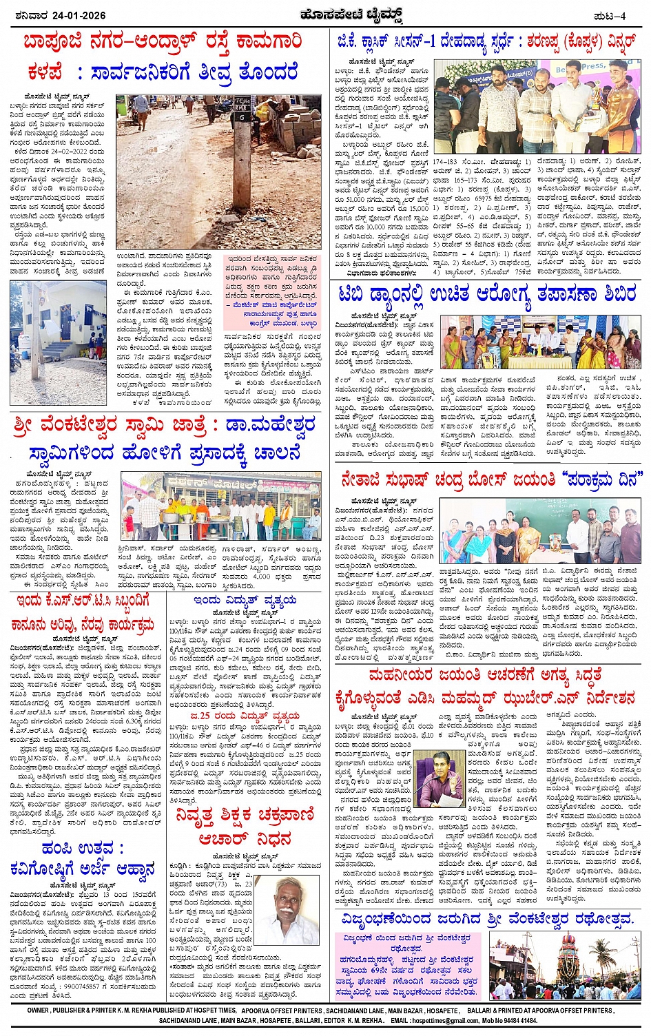 ಮಾಧ್ಯಮ ಅಕಾಡೆಮಿ ಪ್ರಶಸ್ತಿ ಪುರಸ್ಕೃತ 'ಹೊಸಪೇಟೆ ಟೈಮ್ಸ್' Page: 4 January 24, 2026 << First << 4 >> Last >> Page 1Page 2Page 3Page 4 × ಮಾಧ್ಯಮ ಅಕಾಡೆಮಿ ಪ್ರಶಸ್ತಿ ಪುರಸ್ಕೃತ 'ಹೊಸಪೇಟೆ ಟೈಮ್ಸ್' HPT-24012026-4 PAGE-page-001HPT-24012026-4 PAGE-page-002HPT-24012026-4 PAGE-page-003HPT-24012026-4 PAGE-page-004 << First << 4 >> Last >> HPT-24012026-4 PAGE-page-001HPT-24012026-4 PAGE-page-002HPT-24012026-4 PAGE-page-003HPT-24012026-4 PAGE-page-004 HPT-24012026-4 PAGE-page-004