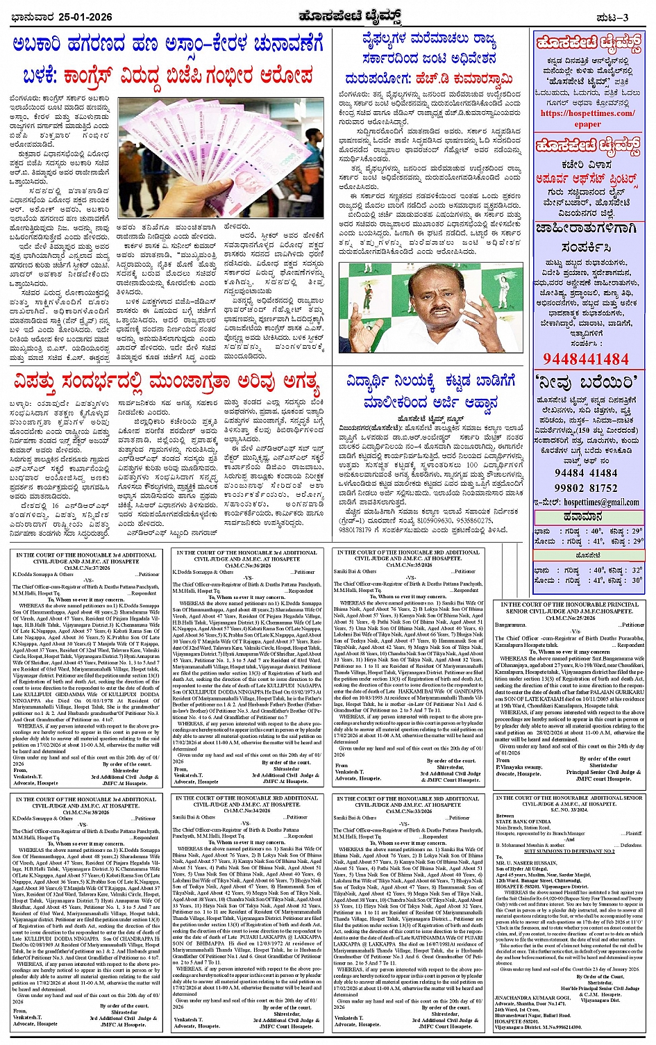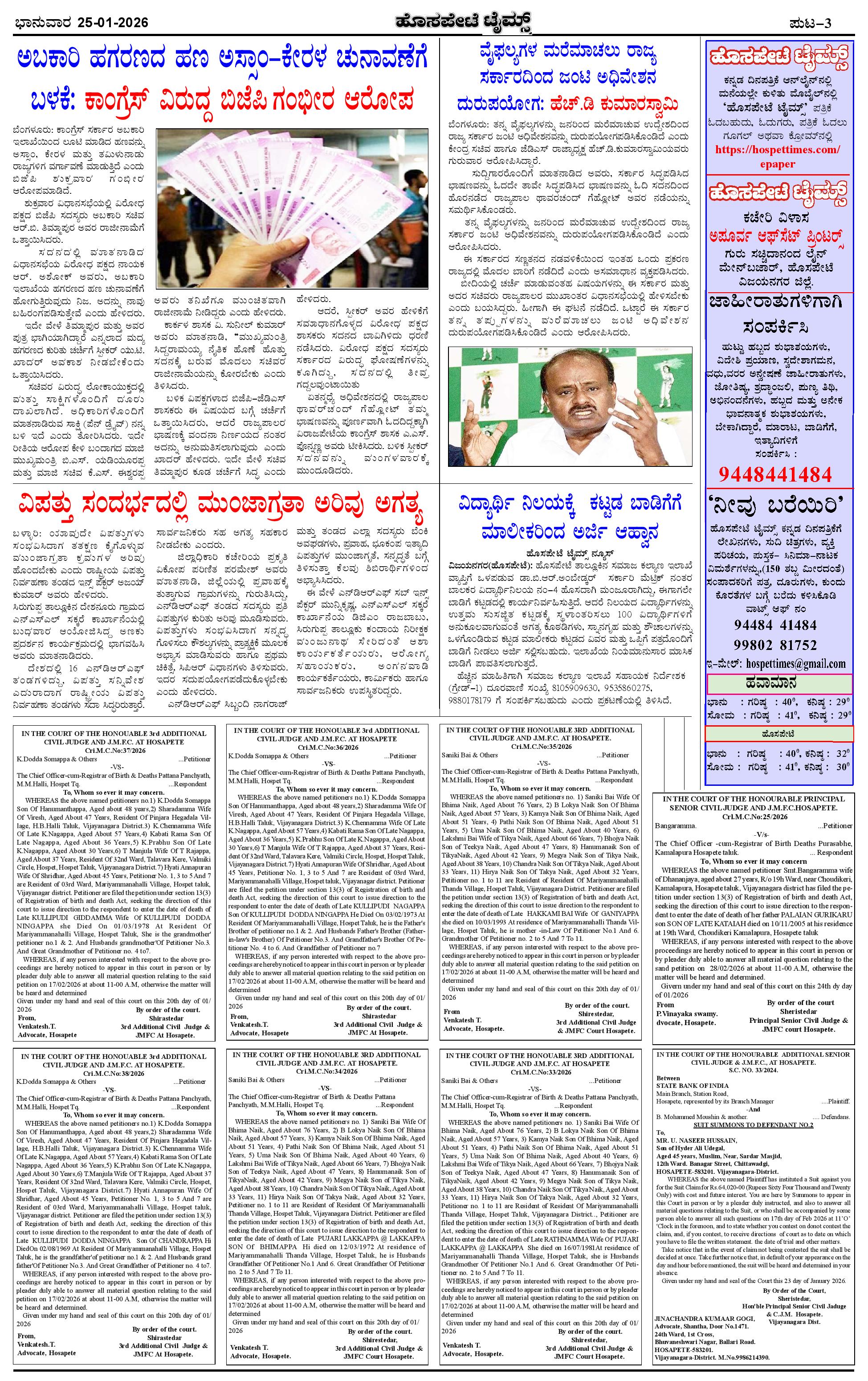 ಮಾಧ್ಯಮ ಅಕಾಡೆಮಿ ಪ್ರಶಸ್ತಿ ಪುರಸ್ಕೃತ 'ಹೊಸಪೇಟೆ ಟೈಮ್ಸ್' Page: 3 January 25, 2026 << First << 3 >> Last >> Page 1Page 2Page 3Page 4 × ಮಾಧ್ಯಮ ಅಕಾಡೆಮಿ ಪ್ರಶಸ್ತಿ ಪುರಸ್ಕೃತ 'ಹೊಸಪೇಟೆ ಟೈಮ್ಸ್' HPT-25012026--4-page-001HPT-25012026--4-page-002HPT-25012026--4-page-003HPT-25012026--4-page-004 << First << 3 >> Last >> HPT-25012026--4-page-001HPT-25012026--4-page-002HPT-25012026--4-page-003HPT-25012026--4-page-004 HPT-25012026--4-page-003
