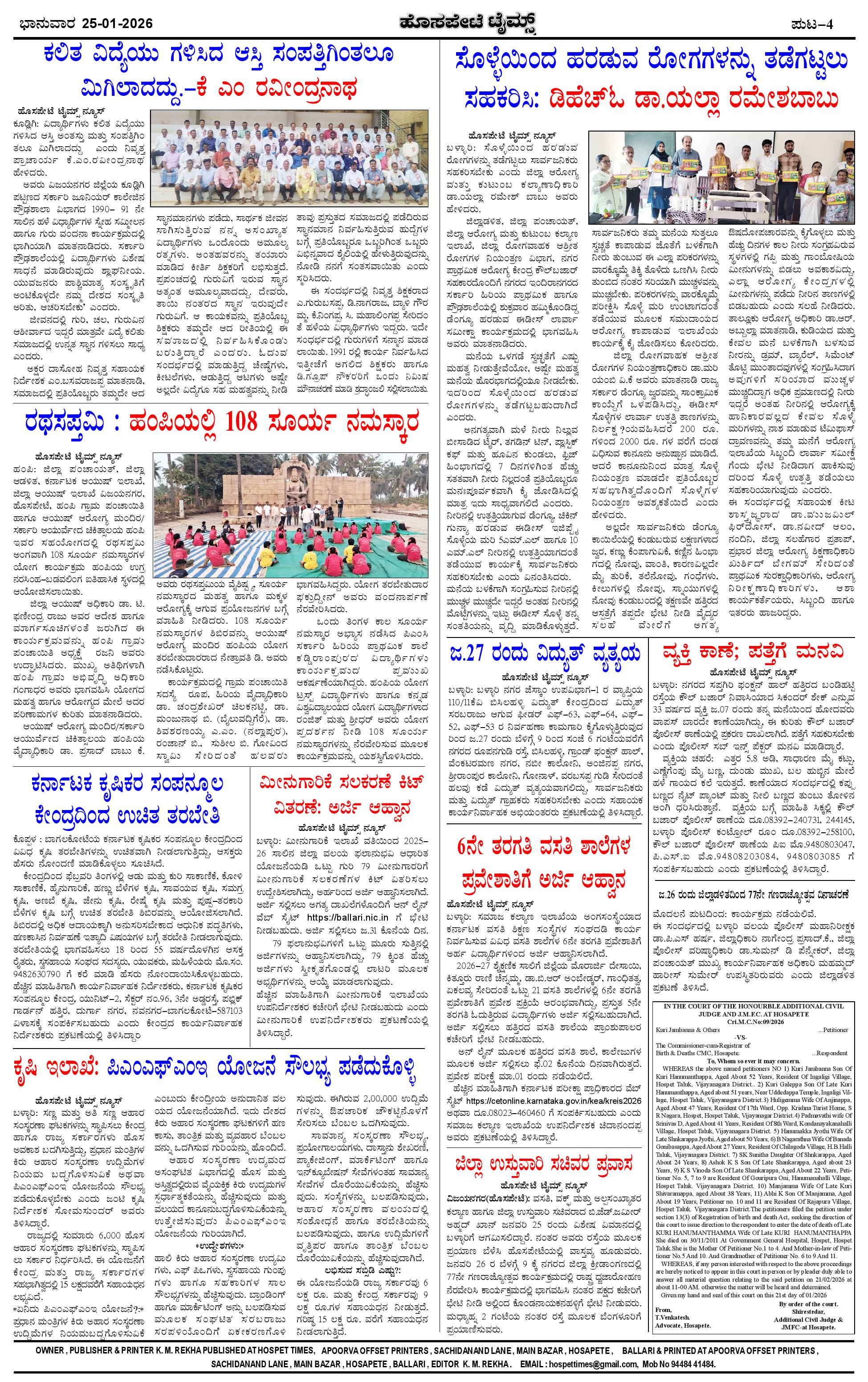 ಮಾಧ್ಯಮ ಅಕಾಡೆಮಿ ಪ್ರಶಸ್ತಿ ಪುರಸ್ಕೃತ 'ಹೊಸಪೇಟೆ ಟೈಮ್ಸ್' Page: 4 January 25, 2026 << First << 4 >> Last >> Page 1Page 2Page 3Page 4 × ಮಾಧ್ಯಮ ಅಕಾಡೆಮಿ ಪ್ರಶಸ್ತಿ ಪುರಸ್ಕೃತ 'ಹೊಸಪೇಟೆ ಟೈಮ್ಸ್' HPT-25012026--4-page-001HPT-25012026--4-page-002HPT-25012026--4-page-003HPT-25012026--4-page-004 << First << 4 >> Last >> HPT-25012026--4-page-001HPT-25012026--4-page-002HPT-25012026--4-page-003HPT-25012026--4-page-004 HPT-25012026--4-page-004