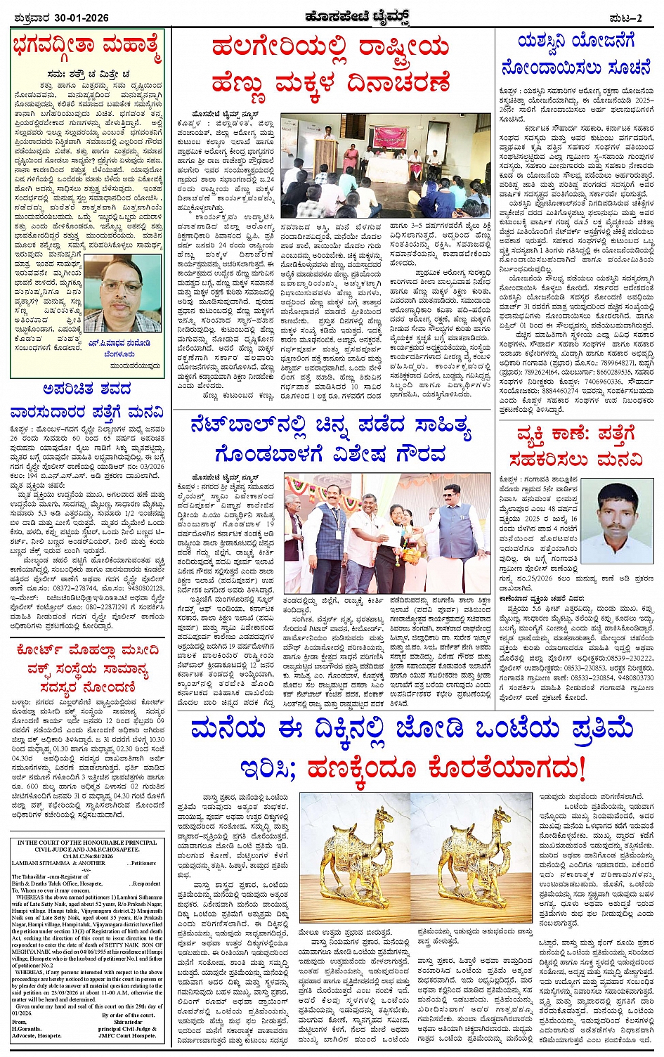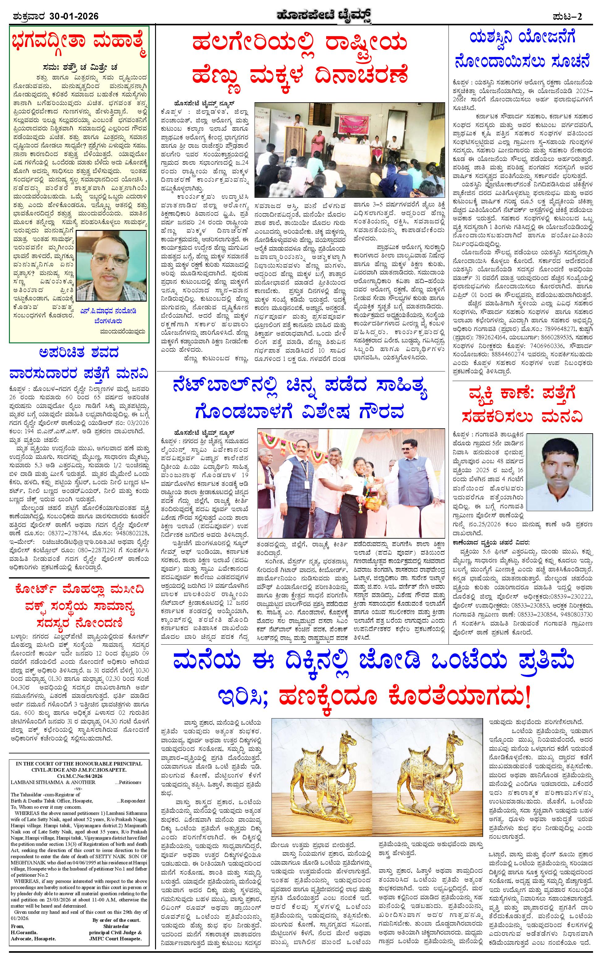 ಮಾಧ್ಯಮ ಅಕಾಡೆಮಿ ಪ್ರಶಸ್ತಿ ಪುರಸ್ಕೃತ 'ಹೊಸಪೇಟೆ ಟೈಮ್ಸ್' Page: 2 January 30, 2026 << First << 2 >> Last >> Page 1Page 2Page 3Page 4 × ಮಾಧ್ಯಮ ಅಕಾಡೆಮಿ ಪ್ರಶಸ್ತಿ ಪುರಸ್ಕೃತ 'ಹೊಸಪೇಟೆ ಟೈಮ್ಸ್' HPT-30012026--4-page-001HPT-30012026--4-page-002HPT-30012026--4-page-003HPT-30012026--4-page-004 << First << 2 >> Last >> HPT-30012026--4-page-001HPT-30012026--4-page-002HPT-30012026--4-page-003HPT-30012026--4-page-004 HPT-30012026--4-page-002