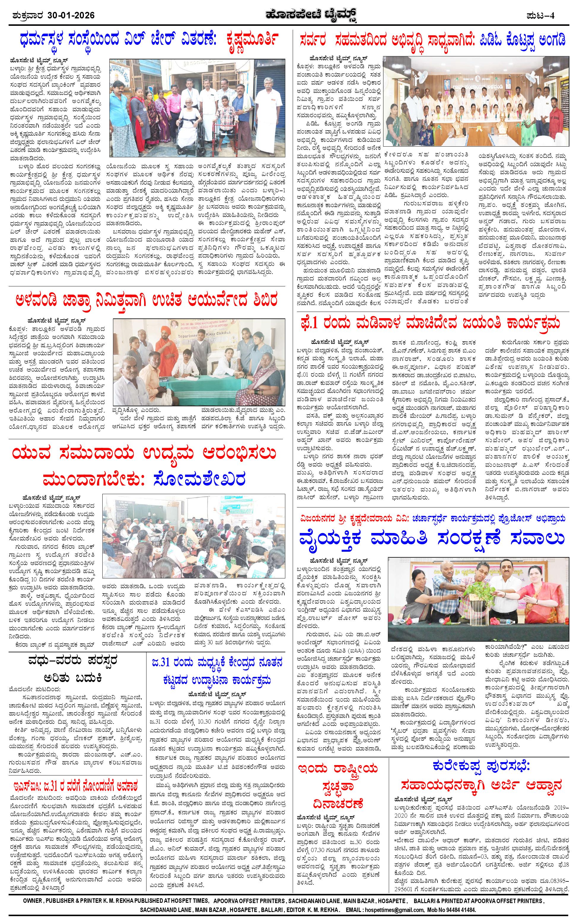 ಮಾಧ್ಯಮ ಅಕಾಡೆಮಿ ಪ್ರಶಸ್ತಿ ಪುರಸ್ಕೃತ 'ಹೊಸಪೇಟೆ ಟೈಮ್ಸ್' Page: 4 January 30, 2026 << First << 4 >> Last >> Page 1Page 2Page 3Page 4 × ಮಾಧ್ಯಮ ಅಕಾಡೆಮಿ ಪ್ರಶಸ್ತಿ ಪುರಸ್ಕೃತ 'ಹೊಸಪೇಟೆ ಟೈಮ್ಸ್' HPT-30012026--4-page-001HPT-30012026--4-page-002HPT-30012026--4-page-003HPT-30012026--4-page-004 << First << 4 >> Last >> HPT-30012026--4-page-001HPT-30012026--4-page-002HPT-30012026--4-page-003HPT-30012026--4-page-004 HPT-30012026--4-page-004