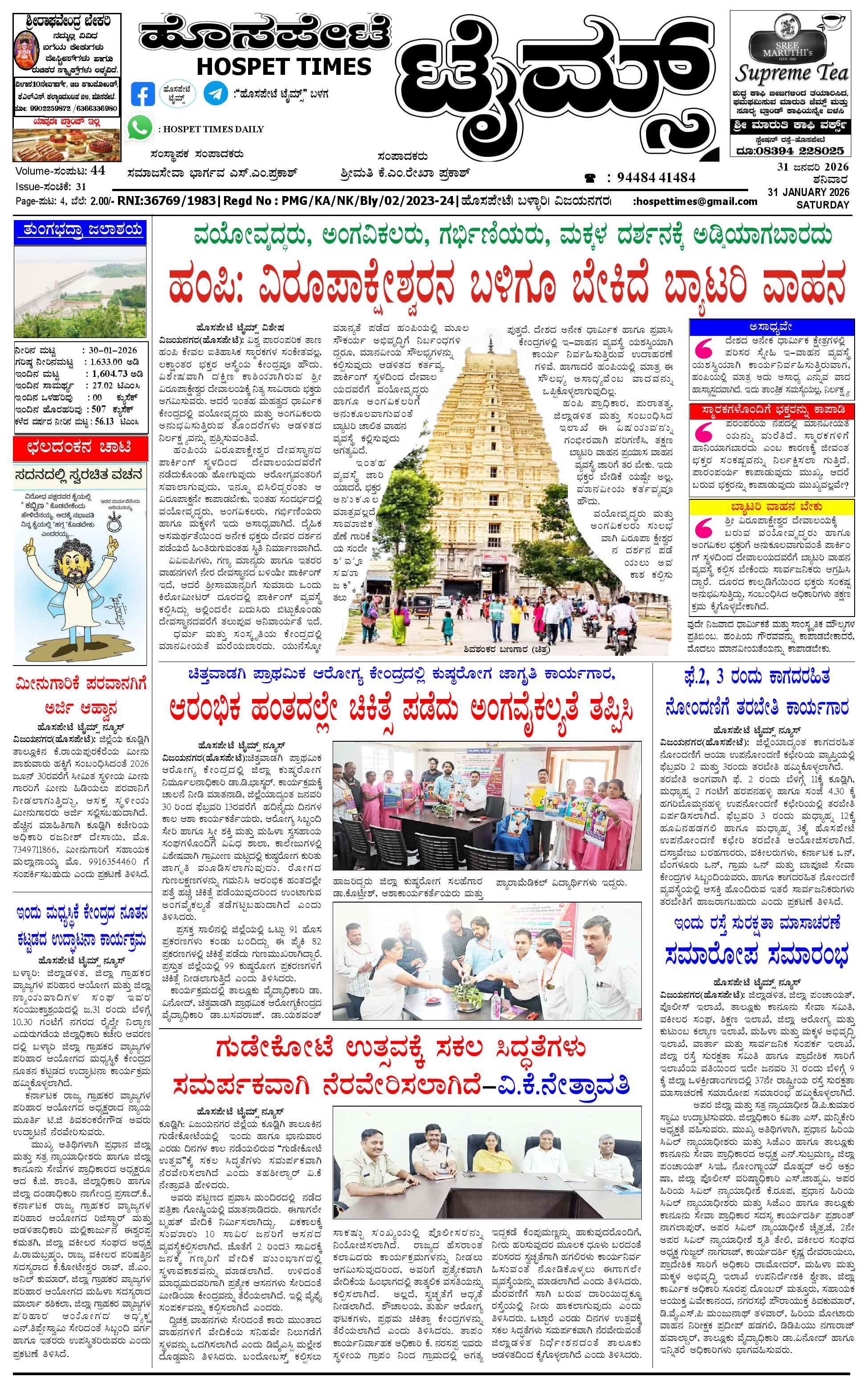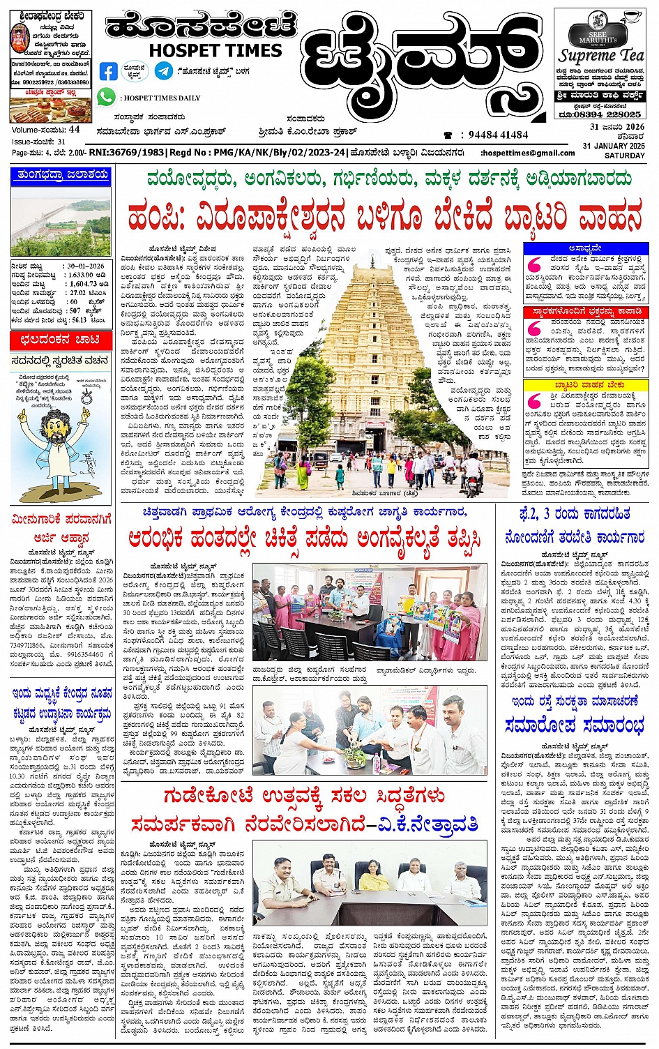 ಮಾಧ್ಯಮ ಅಕಾಡೆಮಿ ಪ್ರಶಸ್ತಿ ಪುರಸ್ಕೃತ 'ಹೊಸಪೇಟೆ ಟೈಮ್ಸ್' January 31, 2026 << First << 1 >> Last >> Page 1Page 2Page 3Page 4 × ಮಾಧ್ಯಮ ಅಕಾಡೆಮಿ ಪ್ರಶಸ್ತಿ ಪುರಸ್ಕೃತ 'ಹೊಸಪೇಟೆ ಟೈಮ್ಸ್' HPT-31012026--4-page-001HPT-31012026--4-page-002HPT-31012026--4-page-003HPT-31012026--4-page-004 << First << 1 >> Last >> HPT-31012026--4-page-001HPT-31012026--4-page-002HPT-31012026--4-page-003HPT-31012026--4-page-004 HPT-31012026--4-page-001