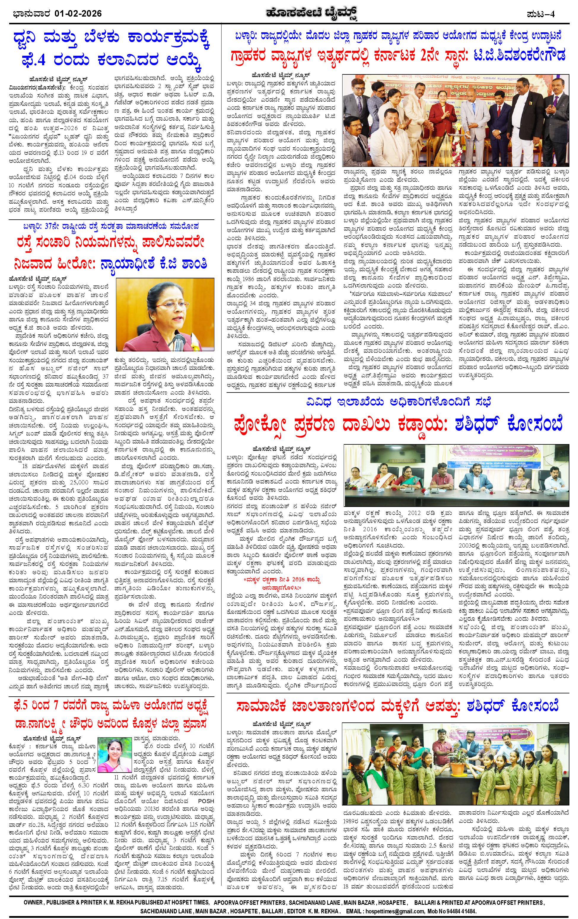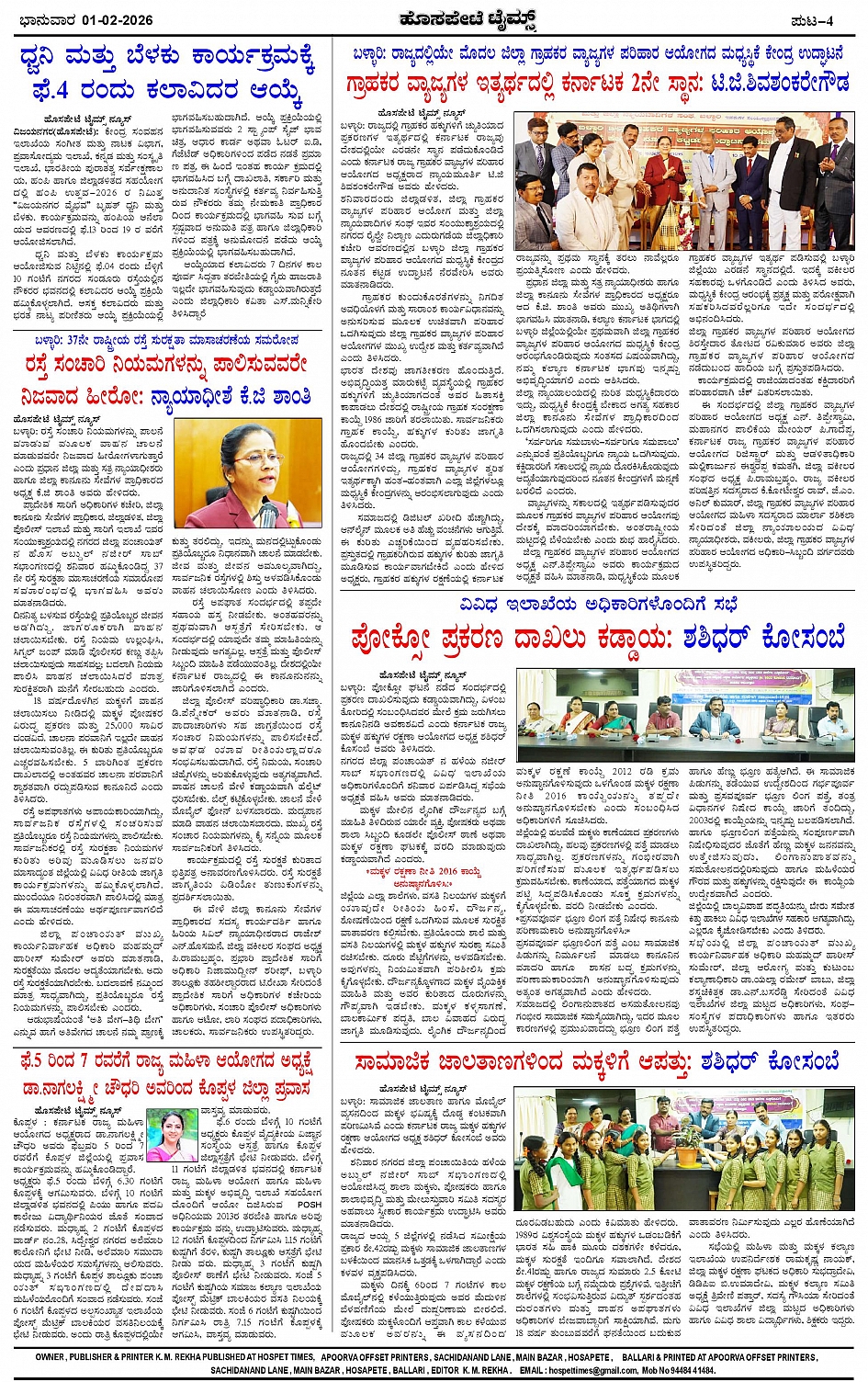 ಮಾಧ್ಯಮ ಅಕಾಡೆಮಿ ಪ್ರಶಸ್ತಿ ಪುರಸ್ಕೃತ 'ಹೊಸಪೇಟೆ ಟೈಮ್ಸ್' Page: 4 February 01, 2026 << First << 4 >> Last >> Page 1Page 2Page 3Page 4 × ಮಾಧ್ಯಮ ಅಕಾಡೆಮಿ ಪ್ರಶಸ್ತಿ ಪುರಸ್ಕೃತ 'ಹೊಸಪೇಟೆ ಟೈಮ್ಸ್' HPT-01022026--4-page-001HPT-01022026--4-page-002HPT-01022026--4-page-003HPT-01022026--4-page-004 << First << 4 >> Last >> HPT-01022026--4-page-001HPT-01022026--4-page-002HPT-01022026--4-page-003HPT-01022026--4-page-004 HPT-01022026--4-page-004