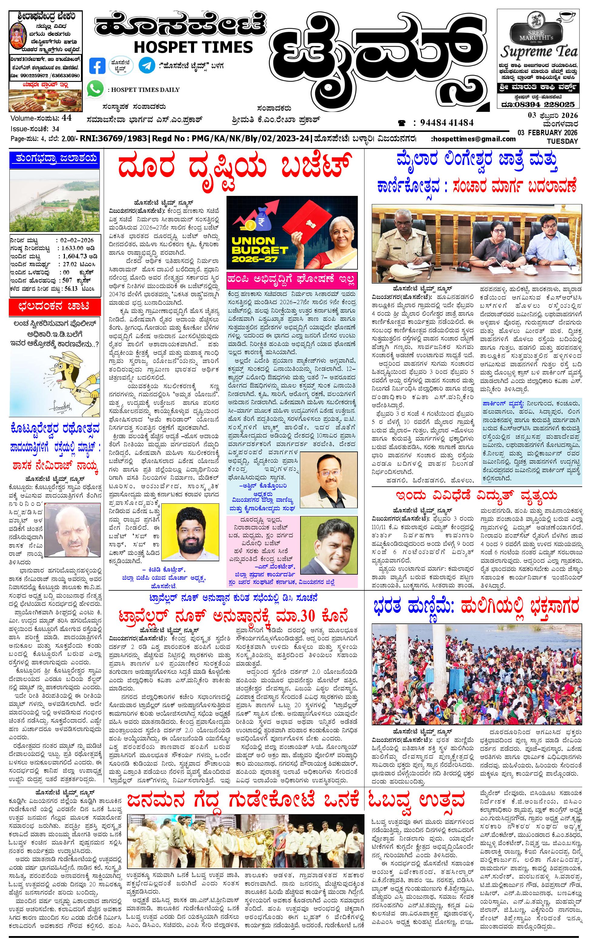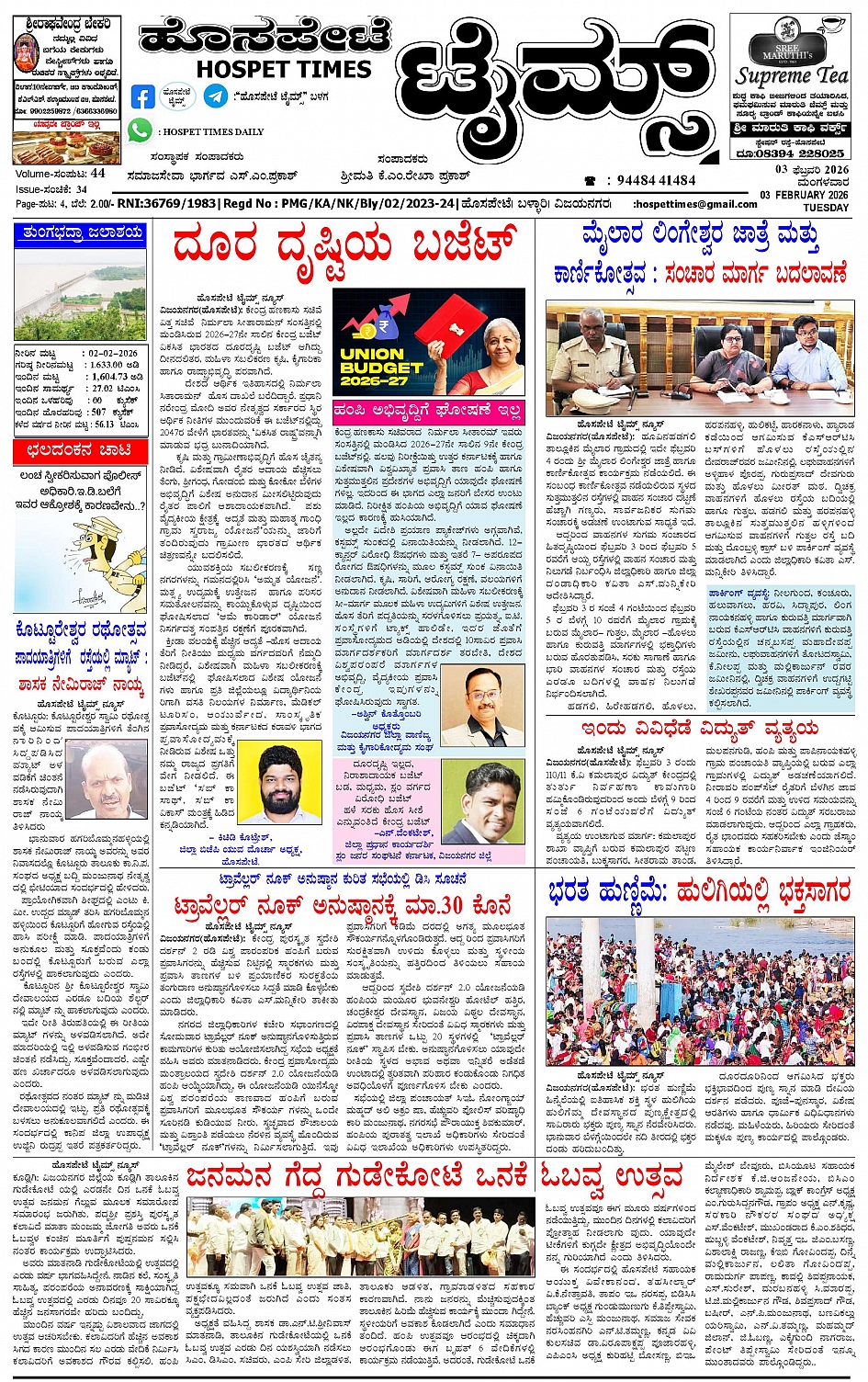 ಮಾಧ್ಯಮ ಅಕಾಡೆಮಿ ಪ್ರಶಸ್ತಿ ಪುರಸ್ಕೃತ 'ಹೊಸಪೇಟೆ ಟೈಮ್ಸ್' February 03, 2026 << First << 1 >> Last >> Page 1Page 2Page 3Page 4 × ಮಾಧ್ಯಮ ಅಕಾಡೆಮಿ ಪ್ರಶಸ್ತಿ ಪುರಸ್ಕೃತ 'ಹೊಸಪೇಟೆ ಟೈಮ್ಸ್' HPT-03022026--4-page-001HPT-03022026--4-page-002HPT-03022026--4-page-003HPT-03022026--4-page-004 << First << 1 >> Last >> HPT-03022026--4-page-001HPT-03022026--4-page-002HPT-03022026--4-page-003HPT-03022026--4-page-004 HPT-03022026--4-page-001