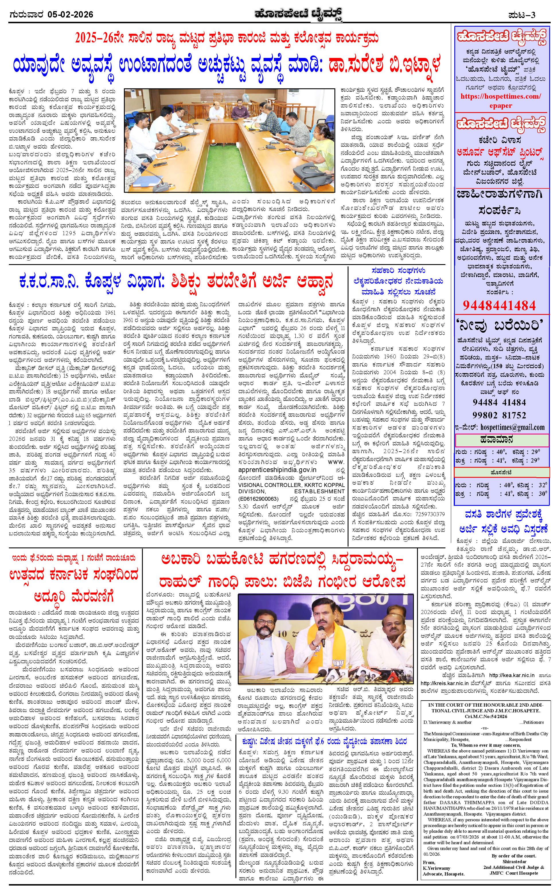 ಮಾಧ್ಯಮ ಅಕಾಡೆಮಿ ಪ್ರಶಸ್ತಿ ಪುರಸ್ಕೃತ 'ಹೊಸಪೇಟೆ ಟೈಮ್ಸ್' Page: 3 February 05, 2026 << First << 3 >> Last >> Page 1Page 2Page 3Page 4 × ಮಾಧ್ಯಮ ಅಕಾಡೆಮಿ ಪ್ರಶಸ್ತಿ ಪುರಸ್ಕೃತ 'ಹೊಸಪೇಟೆ ಟೈಮ್ಸ್' HPT-05022026--4-page-001HPT-05022026--4-page-002HPT-05022026--4-page-003HPT-05022026--4-page-004 << First << 3 >> Last >> HPT-05022026--4-page-001HPT-05022026--4-page-002HPT-05022026--4-page-003HPT-05022026--4-page-004 HPT-05022026--4-page-003