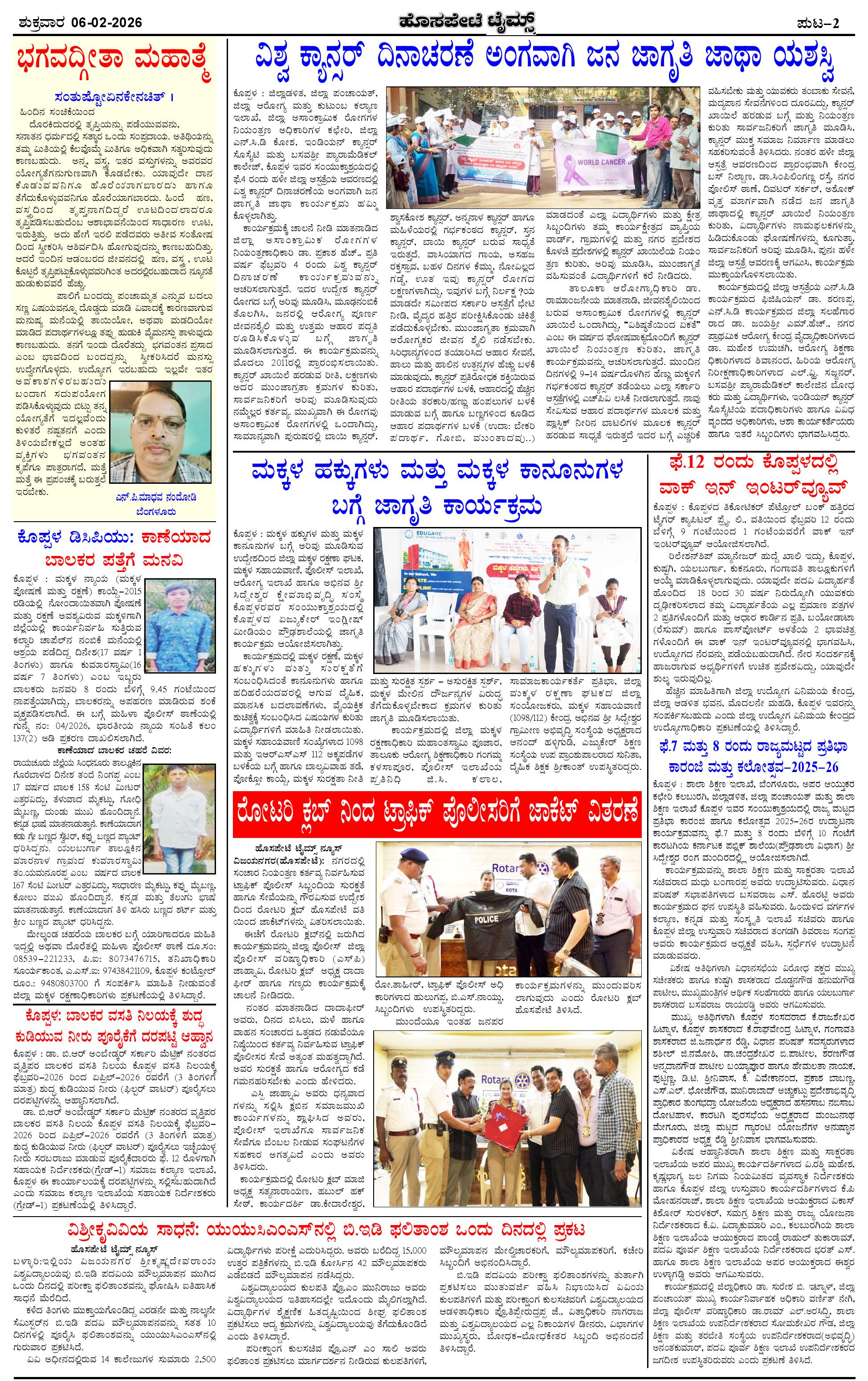 ಮಾಧ್ಯಮ ಅಕಾಡೆಮಿ ಪ್ರಶಸ್ತಿ ಪುರಸ್ಕೃತ 'ಹೊಸಪೇಟೆ ಟೈಮ್ಸ್' Page: 2 February 06, 2026 << First << 2 >> Last >> Page 1Page 2Page 3Page 4 × ಮಾಧ್ಯಮ ಅಕಾಡೆಮಿ ಪ್ರಶಸ್ತಿ ಪುರಸ್ಕೃತ 'ಹೊಸಪೇಟೆ ಟೈಮ್ಸ್' HPT-06022026--4-page-001HPT-06022026--4-page-002HPT-06022026--4-page-003HPT-06022026--4-page-004 << First << 2 >> Last >> HPT-06022026--4-page-001HPT-06022026--4-page-002HPT-06022026--4-page-003HPT-06022026--4-page-004 HPT-06022026--4-page-002