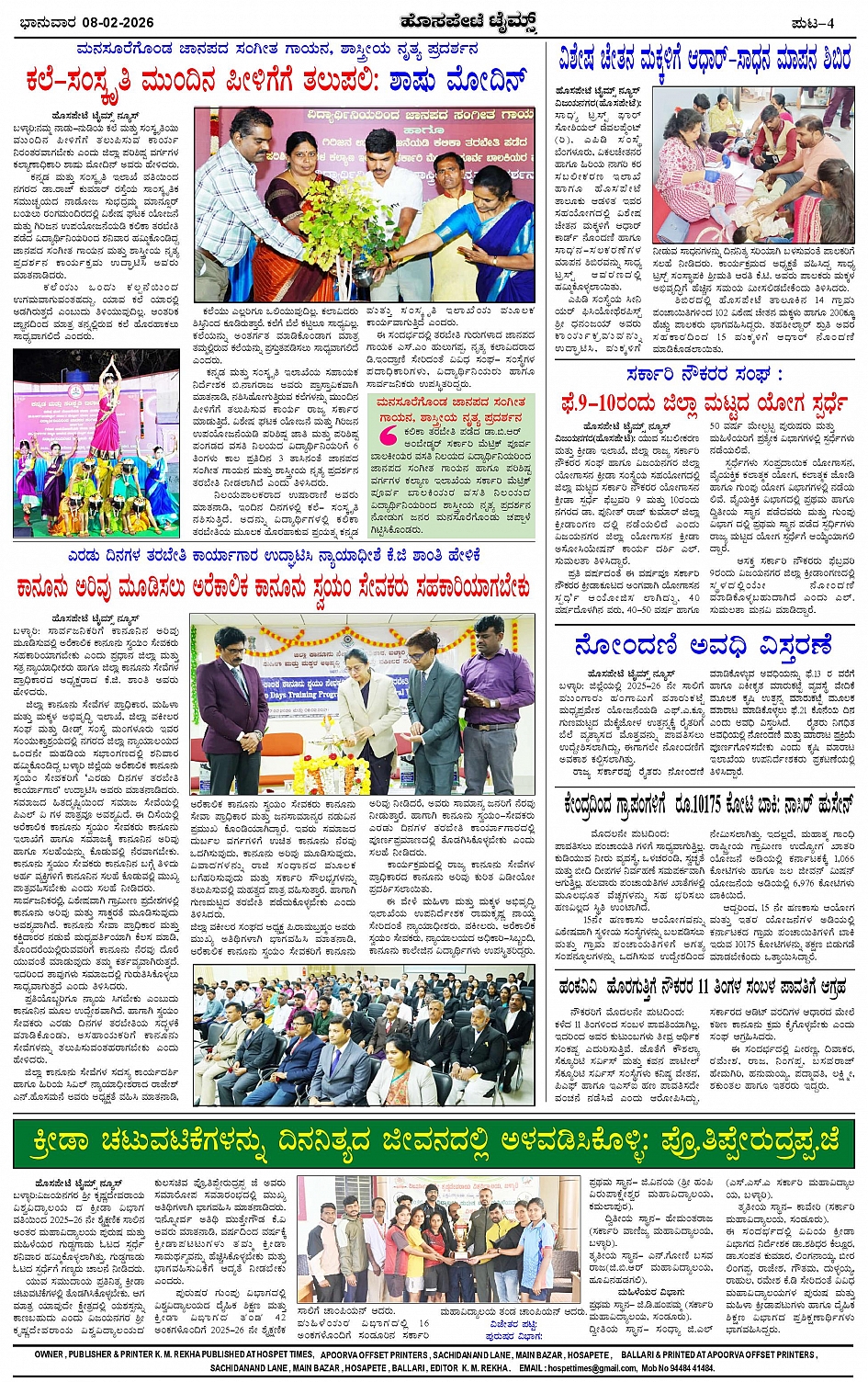ಮಾಧ್ಯಮ ಅಕಾಡೆಮಿ ಪ್ರಶಸ್ತಿ ಪುರಸ್ಕೃತ 'ಹೊಸಪೇಟೆ ಟೈಮ್ಸ್' Page: 4 February 08, 2026 << First << 4 >> Last >> Page 1Page 2Page 3Page 4 × ಮಾಧ್ಯಮ ಅಕಾಡೆಮಿ ಪ್ರಶಸ್ತಿ ಪುರಸ್ಕೃತ 'ಹೊಸಪೇಟೆ ಟೈಮ್ಸ್' HPT-08022026--4-page-001HPT-08022026--4-page-002HPT-08022026--4-page-003HPT-08022026--4-page-004 << First << 4 >> Last >> HPT-08022026--4-page-001HPT-08022026--4-page-002HPT-08022026--4-page-003HPT-08022026--4-page-004 HPT-08022026--4-page-004