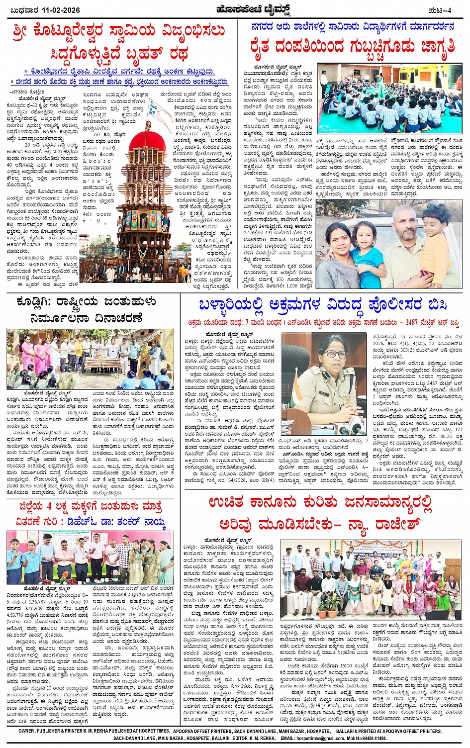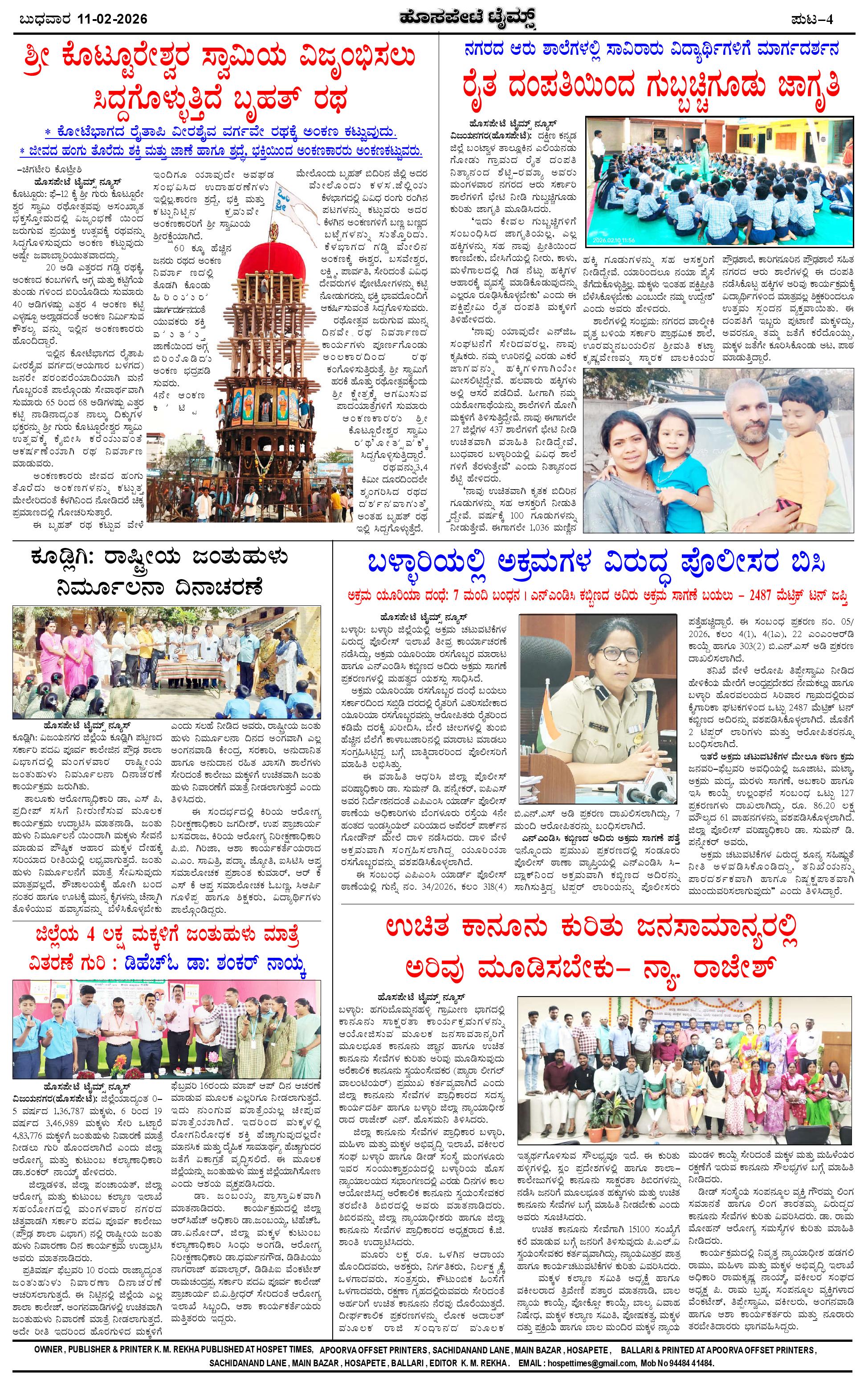 ಮಾಧ್ಯಮ ಅಕಾಡೆಮಿ ಪ್ರಶಸ್ತಿ ಪುರಸ್ಕೃತ 'ಹೊಸಪೇಟೆ ಟೈಮ್ಸ್' Page: 4 February 11, 2026 << First << 4 >> Last >> Page 1Page 2Page 3Page 4 × ಮಾಧ್ಯಮ ಅಕಾಡೆಮಿ ಪ್ರಶಸ್ತಿ ಪುರಸ್ಕೃತ 'ಹೊಸಪೇಟೆ ಟೈಮ್ಸ್' HPT-11022026-4-page-001HPT-11022026-4-page-002HPT-11022026-4-page-003HPT-11022026-4-page-004 << First << 4 >> Last >> HPT-11022026-4-page-001HPT-11022026-4-page-002HPT-11022026-4-page-003HPT-11022026-4-page-004 HPT-11022026-4-page-004