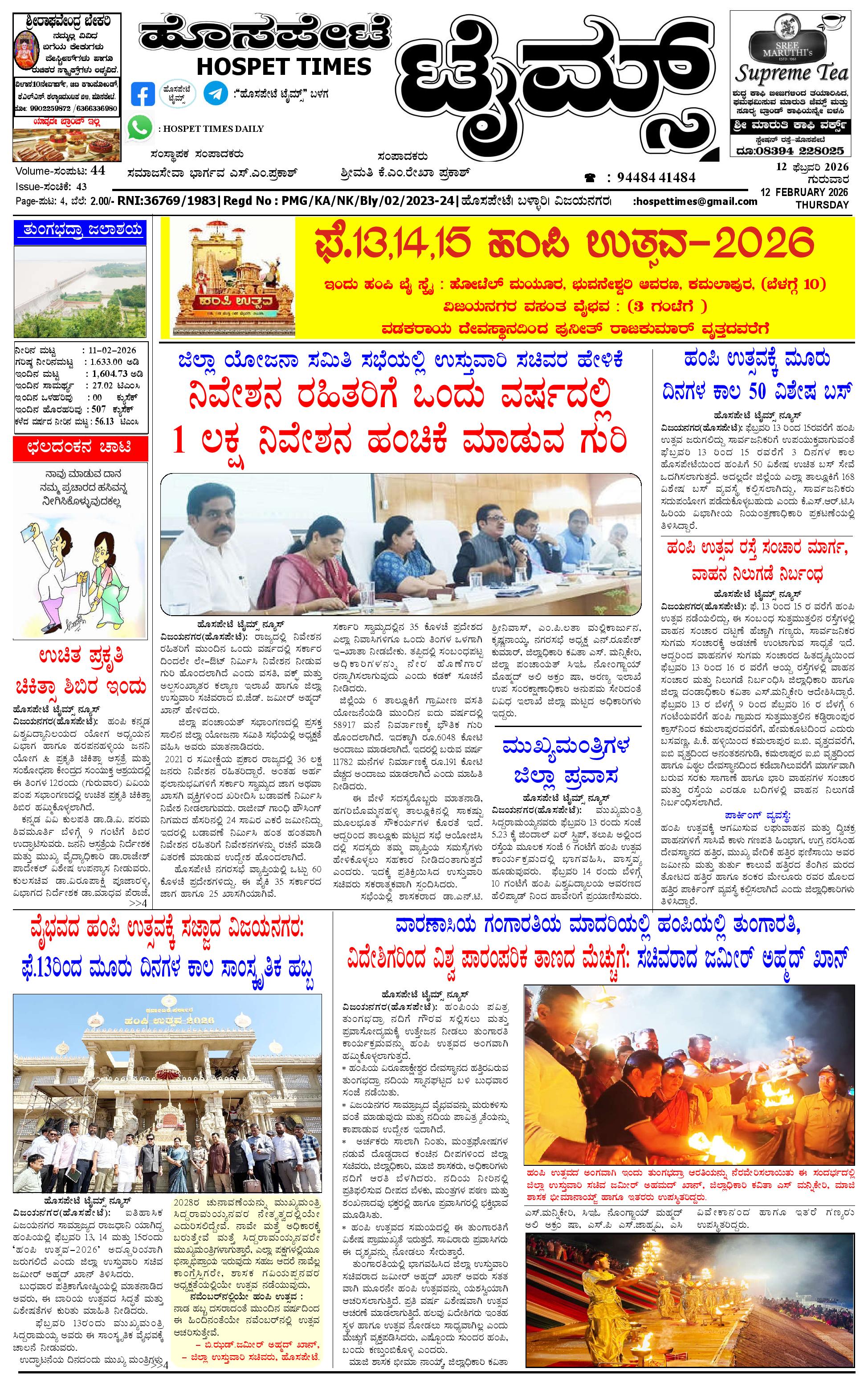 ಮಾಧ್ಯಮ ಅಕಾಡೆಮಿ ಪ್ರಶಸ್ತಿ ಪುರಸ್ಕೃತ 'ಹೊಸಪೇಟೆ ಟೈಮ್ಸ್' February 12, 2026 << First << 1 >> Last >> Page 1Page 2Page 3Page 4 × ಮಾಧ್ಯಮ ಅಕಾಡೆಮಿ ಪ್ರಶಸ್ತಿ ಪುರಸ್ಕೃತ 'ಹೊಸಪೇಟೆ ಟೈಮ್ಸ್' HPT-12022026--4-page-001HPT-12022026--4-page-002HPT-12022026--4-page-003HPT-12022026--4-page-004 << First << 1 >> Last >> HPT-12022026--4-page-001HPT-12022026--4-page-002HPT-12022026--4-page-003HPT-12022026--4-page-004 HPT-12022026--4-page-001