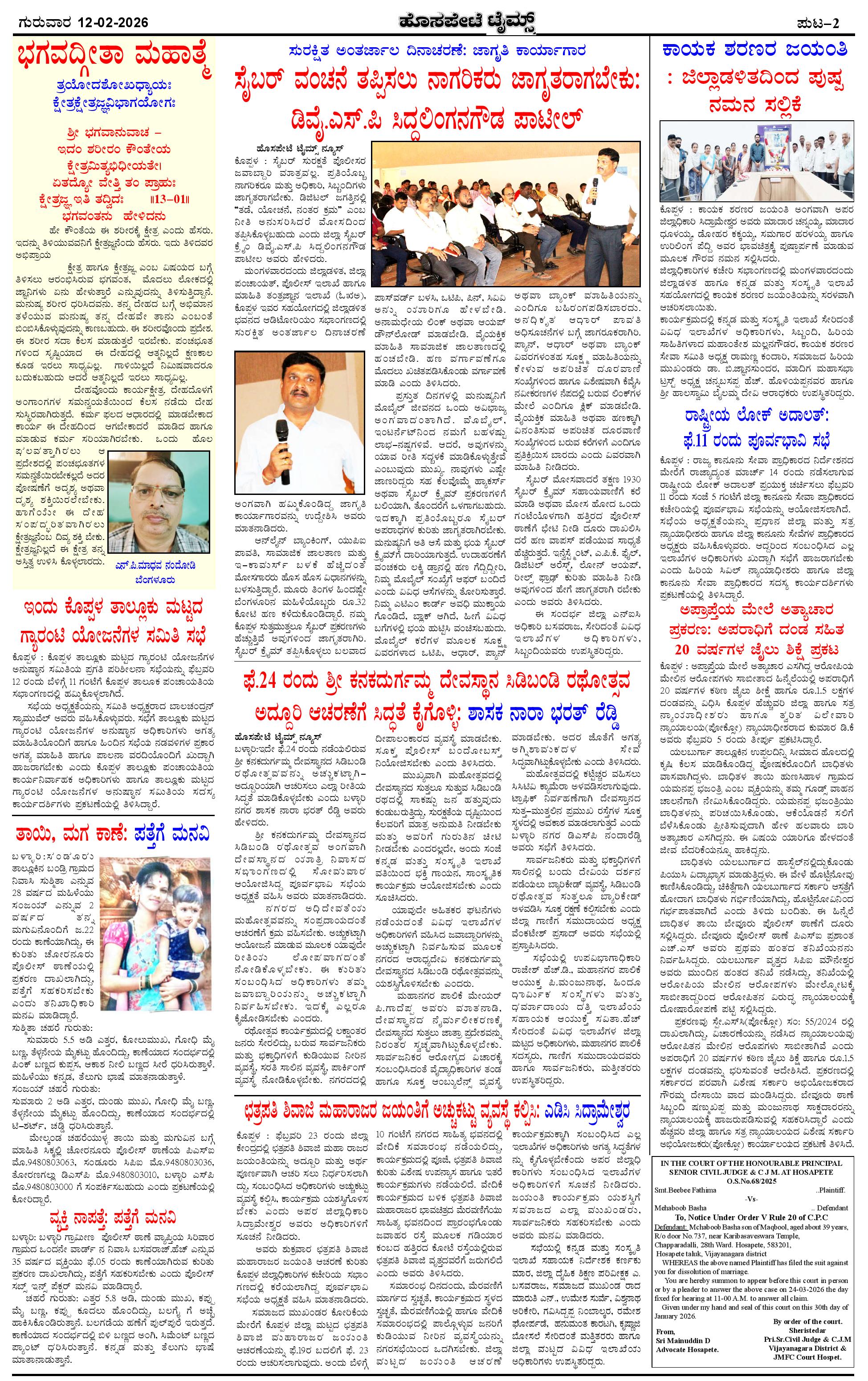 ಮಾಧ್ಯಮ ಅಕಾಡೆಮಿ ಪ್ರಶಸ್ತಿ ಪುರಸ್ಕೃತ 'ಹೊಸಪೇಟೆ ಟೈಮ್ಸ್' Page: 2 February 12, 2026 << First << 2 >> Last >> Page 1Page 2Page 3Page 4 × ಮಾಧ್ಯಮ ಅಕಾಡೆಮಿ ಪ್ರಶಸ್ತಿ ಪುರಸ್ಕೃತ 'ಹೊಸಪೇಟೆ ಟೈಮ್ಸ್' HPT-12022026--4-page-001HPT-12022026--4-page-002HPT-12022026--4-page-003HPT-12022026--4-page-004 << First << 2 >> Last >> HPT-12022026--4-page-001HPT-12022026--4-page-002HPT-12022026--4-page-003HPT-12022026--4-page-004 HPT-12022026--4-page-002