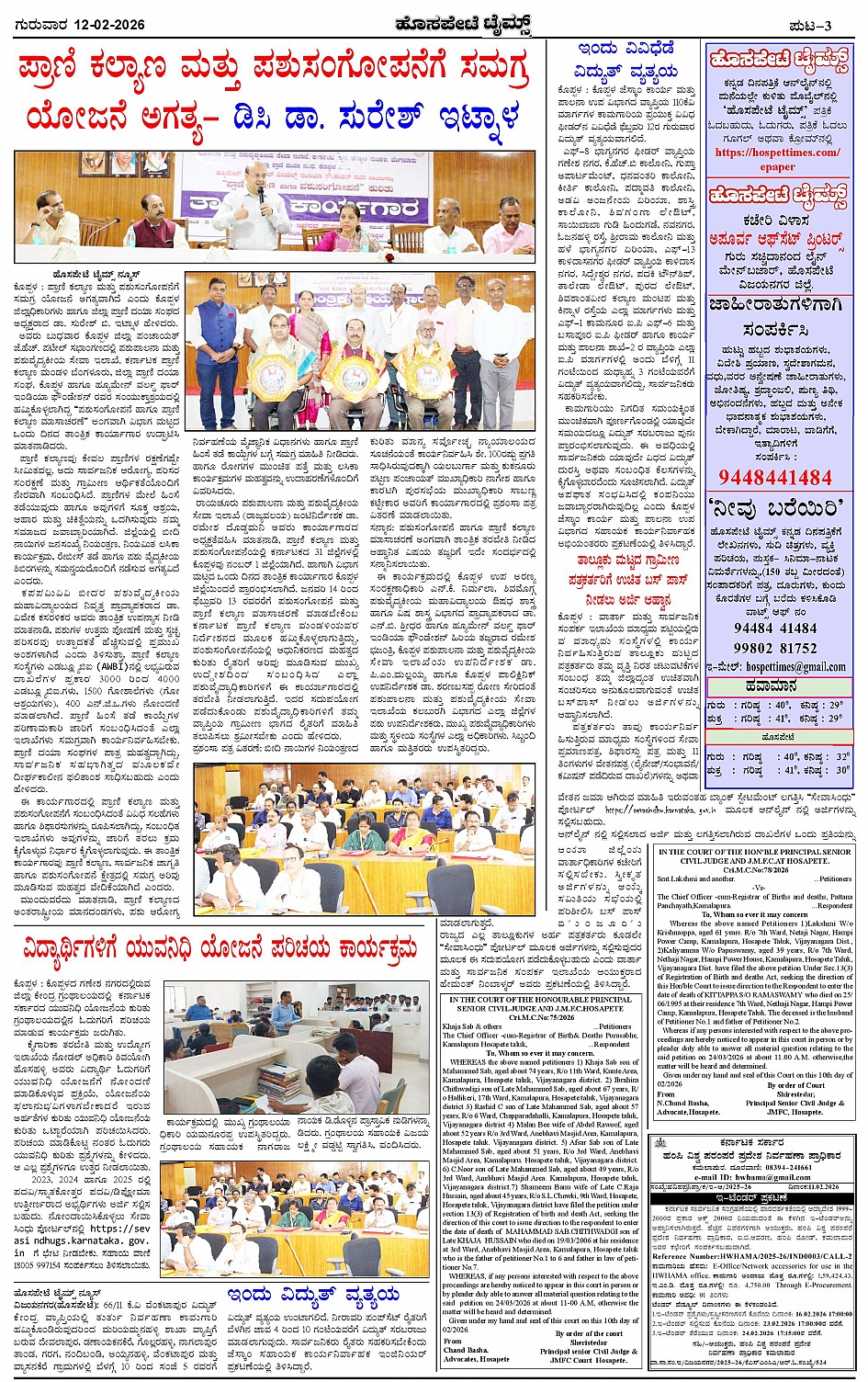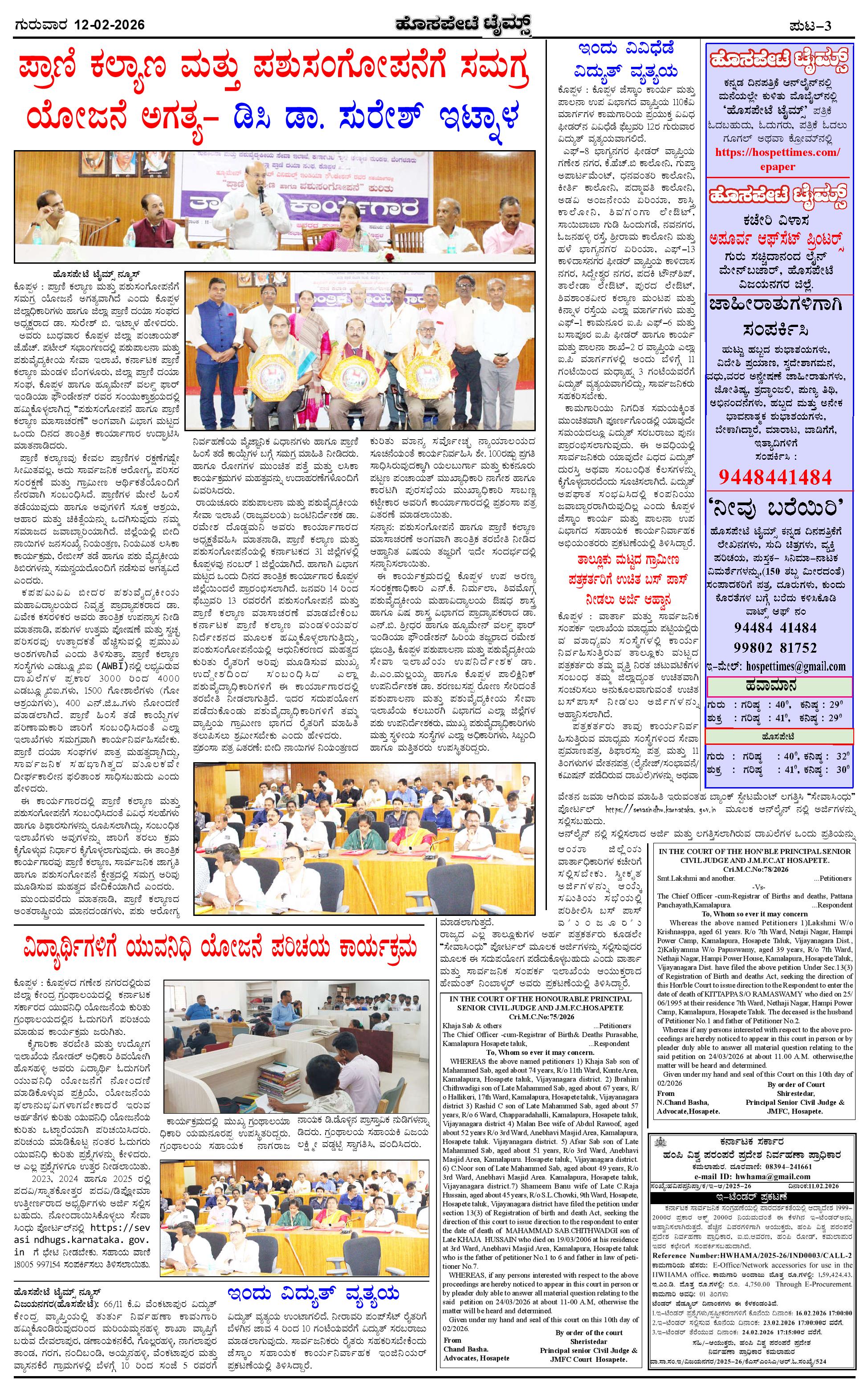 ಮಾಧ್ಯಮ ಅಕಾಡೆಮಿ ಪ್ರಶಸ್ತಿ ಪುರಸ್ಕೃತ 'ಹೊಸಪೇಟೆ ಟೈಮ್ಸ್' Page: 3 February 12, 2026 << First << 3 >> Last >> Page 1Page 2Page 3Page 4 × ಮಾಧ್ಯಮ ಅಕಾಡೆಮಿ ಪ್ರಶಸ್ತಿ ಪುರಸ್ಕೃತ 'ಹೊಸಪೇಟೆ ಟೈಮ್ಸ್' HPT-12022026--4-page-001HPT-12022026--4-page-002HPT-12022026--4-page-003HPT-12022026--4-page-004 << First << 3 >> Last >> HPT-12022026--4-page-001HPT-12022026--4-page-002HPT-12022026--4-page-003HPT-12022026--4-page-004 HPT-12022026--4-page-003
