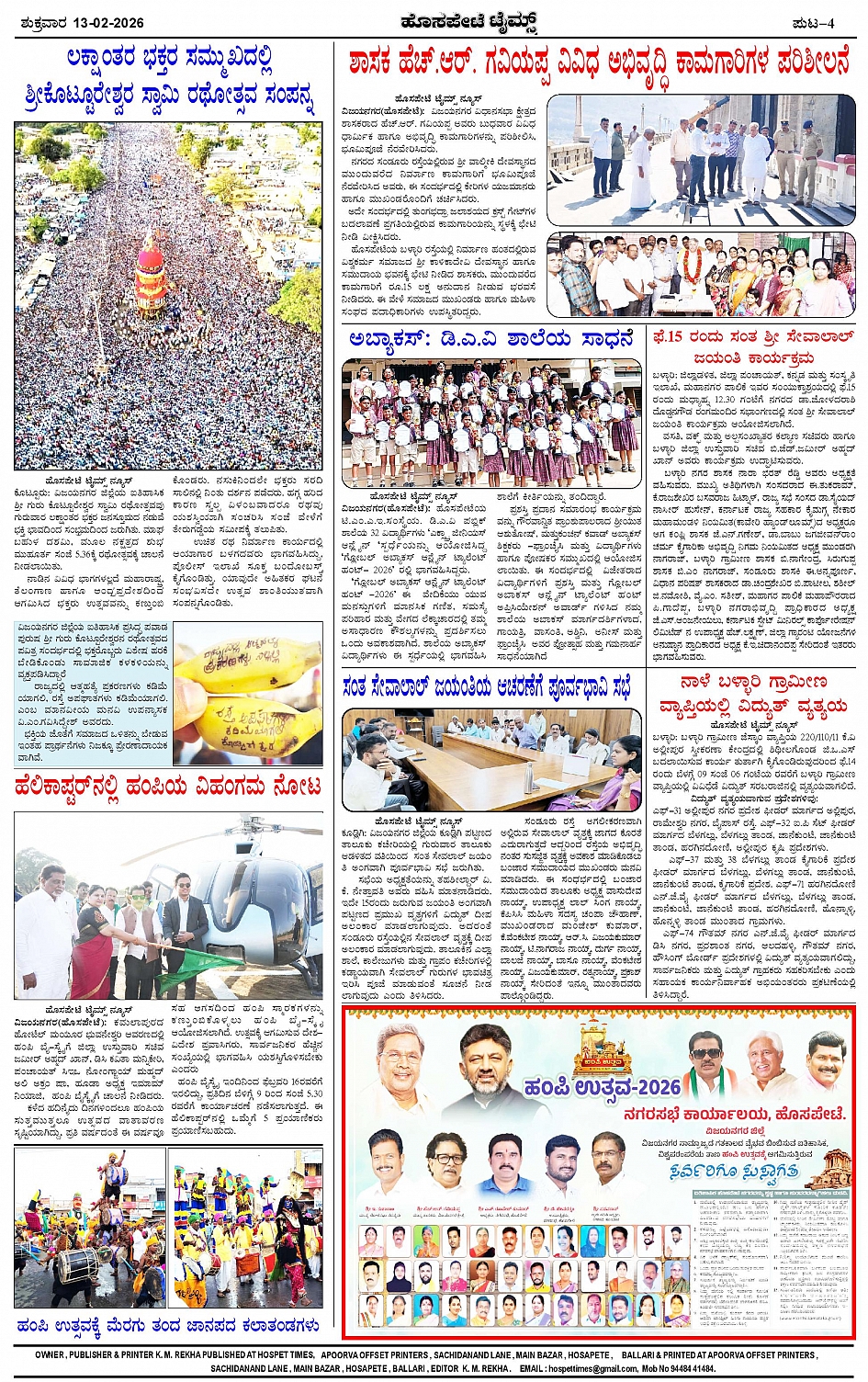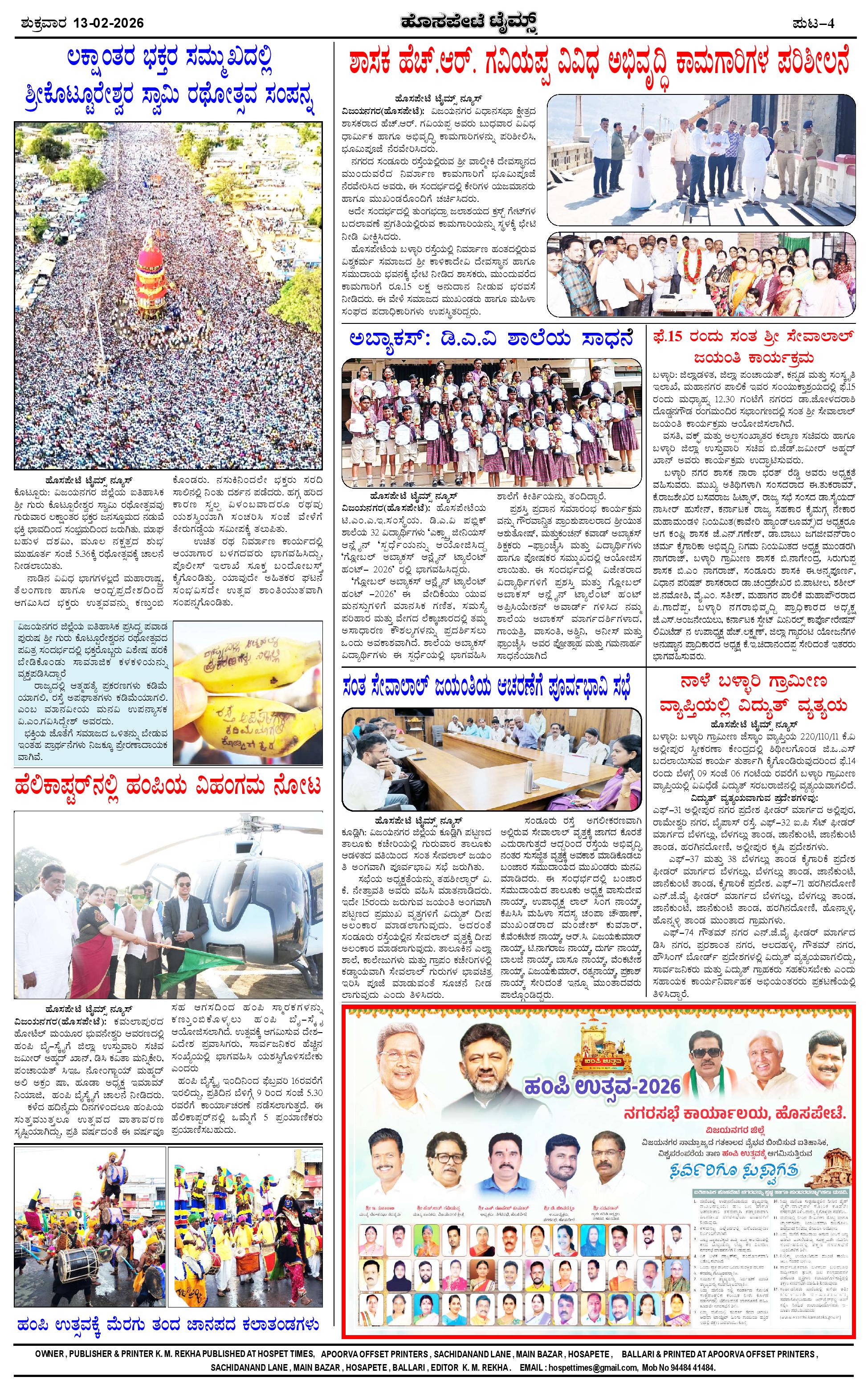 ಮಾಧ್ಯಮ ಅಕಾಡೆಮಿ ಪ್ರಶಸ್ತಿ ಪುರಸ್ಕೃತ 'ಹೊಸಪೇಟೆ ಟೈಮ್ಸ್' Page: 4 February 13, 2026 << First << 4 >> Last >> Page 1Page 2Page 3Page 4 × ಮಾಧ್ಯಮ ಅಕಾಡೆಮಿ ಪ್ರಶಸ್ತಿ ಪುರಸ್ಕೃತ 'ಹೊಸಪೇಟೆ ಟೈಮ್ಸ್' HPT-13022026-4-page-001HPT-13022026-4-page-002HPT-13022026-4-page-003HPT-13022026-4-page-004 << First << 4 >> Last >> HPT-13022026-4-page-001HPT-13022026-4-page-002HPT-13022026-4-page-003HPT-13022026-4-page-004 HPT-13022026-4-page-004