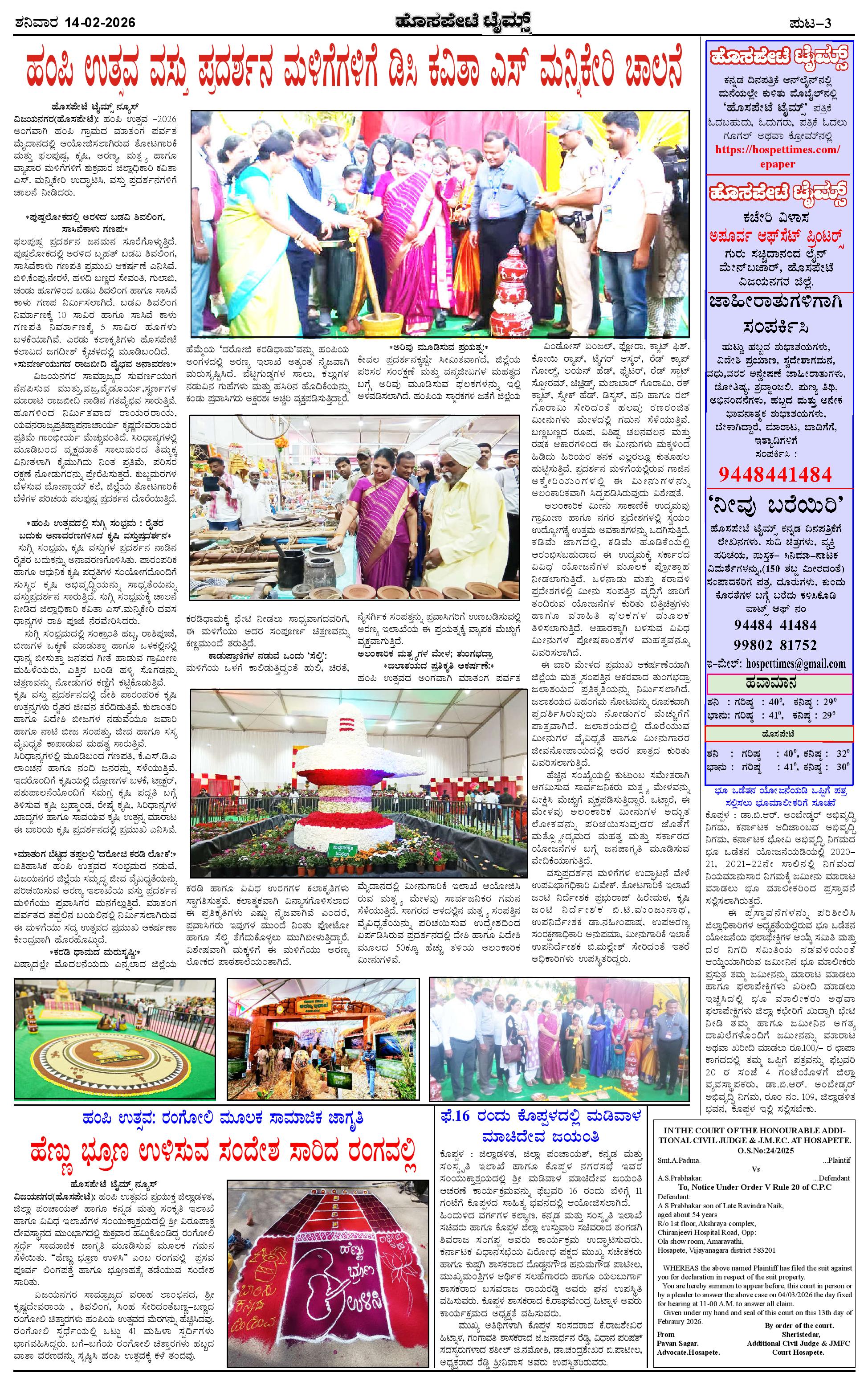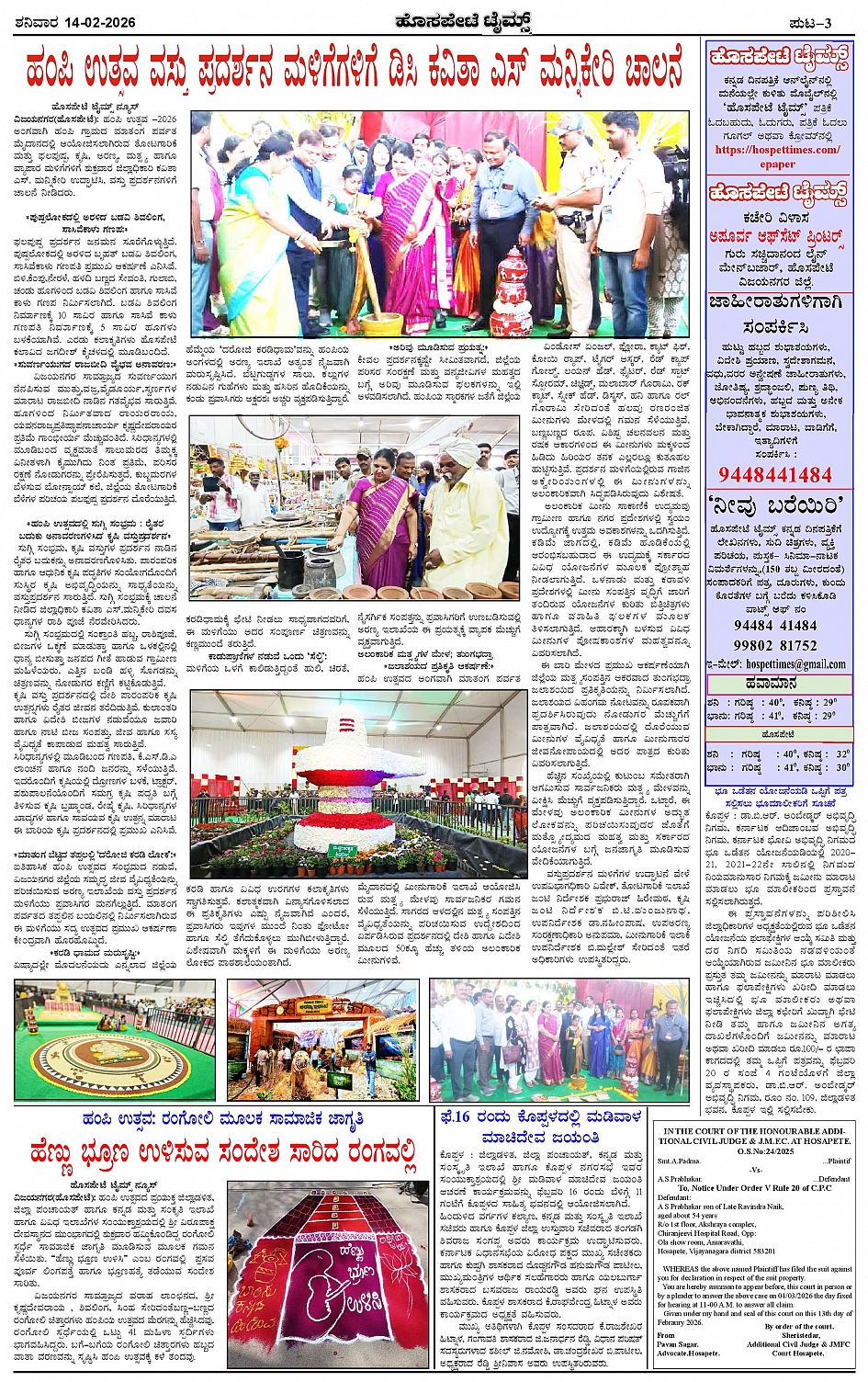 ಮಾಧ್ಯಮ ಅಕಾಡೆಮಿ ಪ್ರಶಸ್ತಿ ಪುರಸ್ಕೃತ 'ಹೊಸಪೇಟೆ ಟೈಮ್ಸ್' Page: 3 February 14, 2026 << First << 3 >> Last >> Page 1Page 2Page 3Page 4 × ಮಾಧ್ಯಮ ಅಕಾಡೆಮಿ ಪ್ರಶಸ್ತಿ ಪುರಸ್ಕೃತ 'ಹೊಸಪೇಟೆ ಟೈಮ್ಸ್' HPT-14022026--4-page-001HPT-14022026--4-page-002HPT-14022026--4-page-003HPT-14022026--4-page-004 << First << 3 >> Last >> HPT-14022026--4-page-001HPT-14022026--4-page-002HPT-14022026--4-page-003HPT-14022026--4-page-004 HPT-14022026--4-page-003