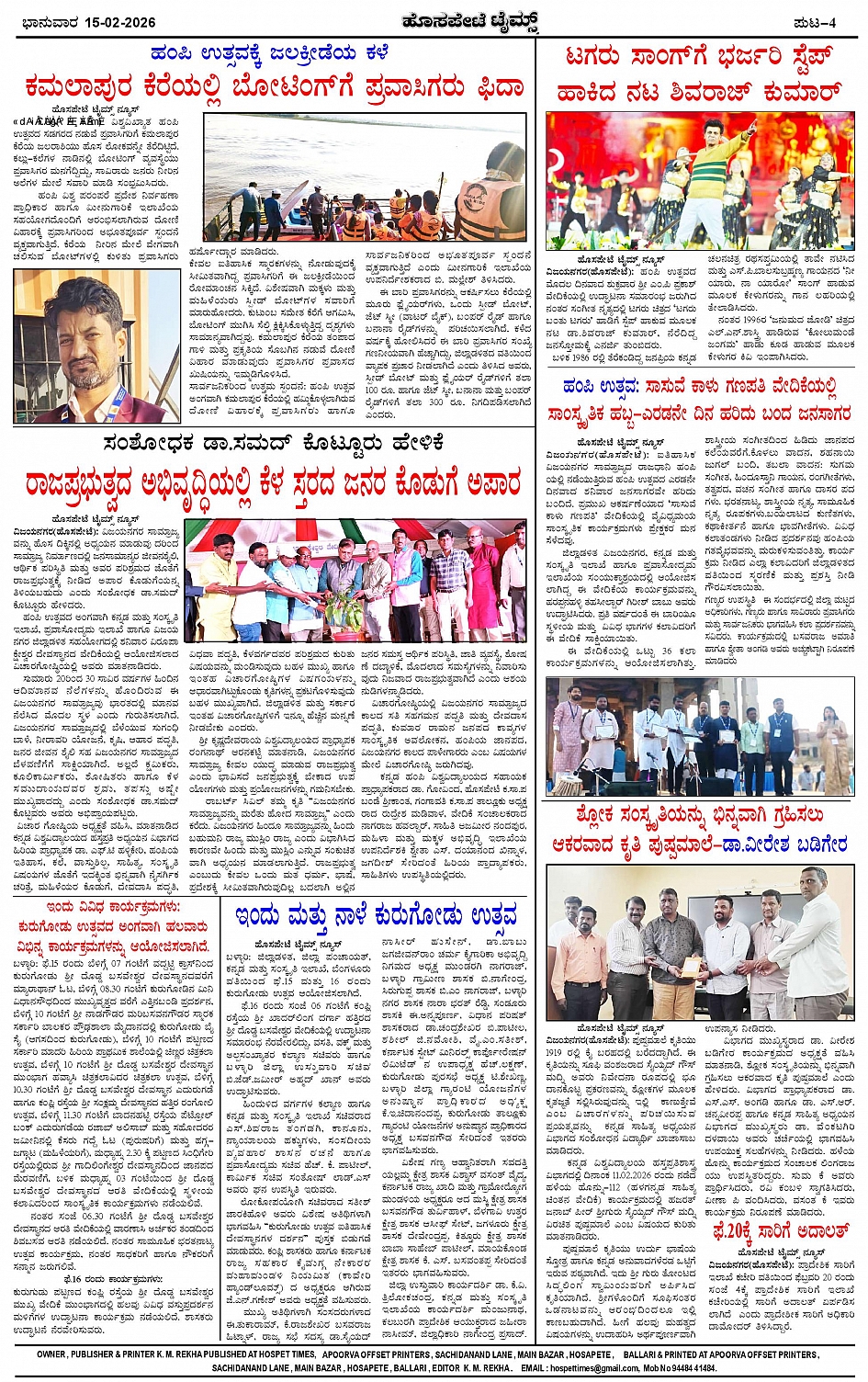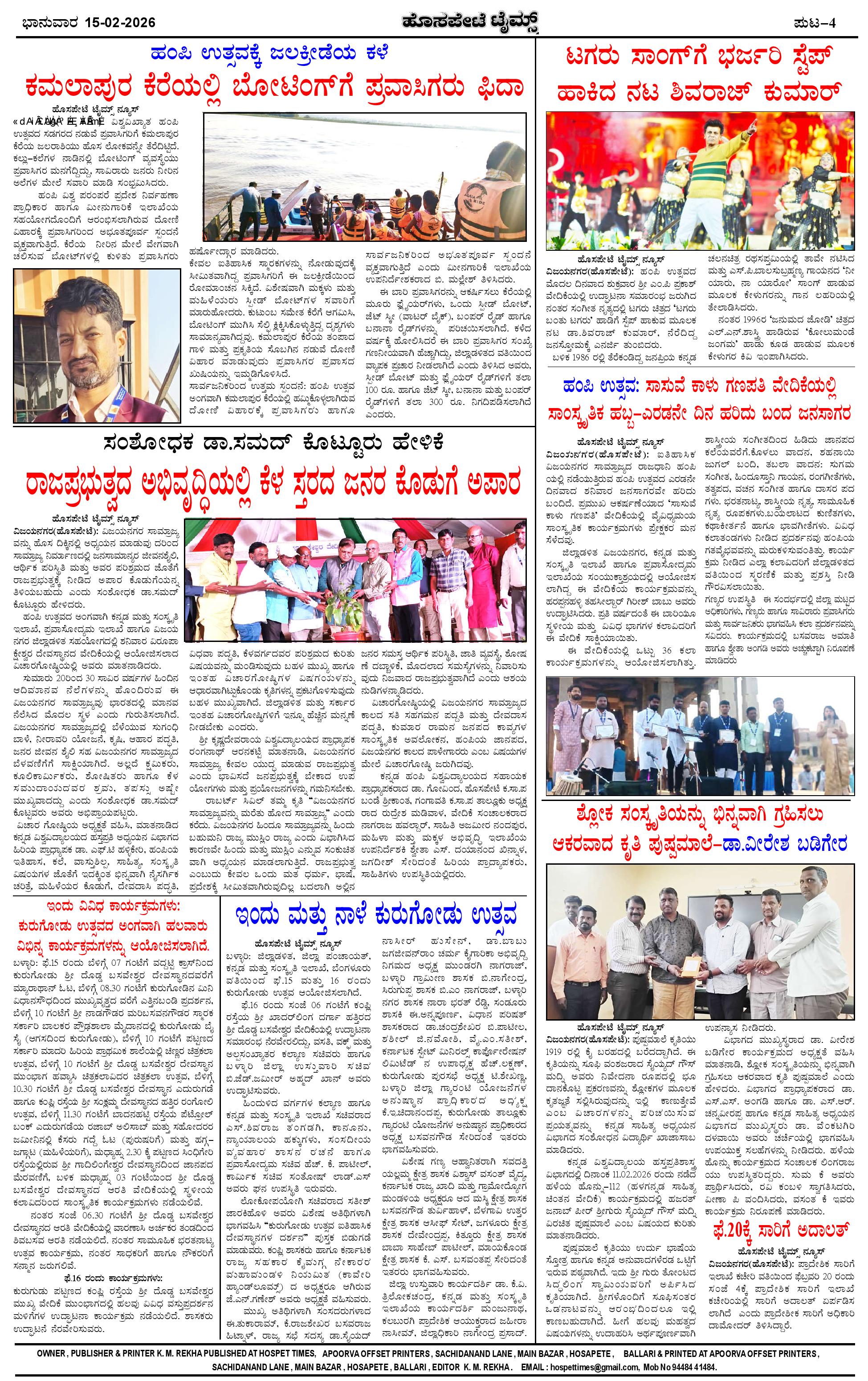 ಮಾಧ್ಯಮ ಅಕಾಡೆಮಿ ಪ್ರಶಸ್ತಿ ಪುರಸ್ಕೃತ 'ಹೊಸಪೇಟೆ ಟೈಮ್ಸ್' Page: 4 February 15, 2026 << First << 4 >> Last >> Page 1Page 2Page 3Page 4 × ಮಾಧ್ಯಮ ಅಕಾಡೆಮಿ ಪ್ರಶಸ್ತಿ ಪುರಸ್ಕೃತ 'ಹೊಸಪೇಟೆ ಟೈಮ್ಸ್' HPT-15022026--4-page-001HPT-15022026--4-page-002HPT-15022026--4-page-003HPT-15022026--4-page-004 << First << 4 >> Last >> HPT-15022026--4-page-001HPT-15022026--4-page-002HPT-15022026--4-page-003HPT-15022026--4-page-004 HPT-15022026--4-page-004