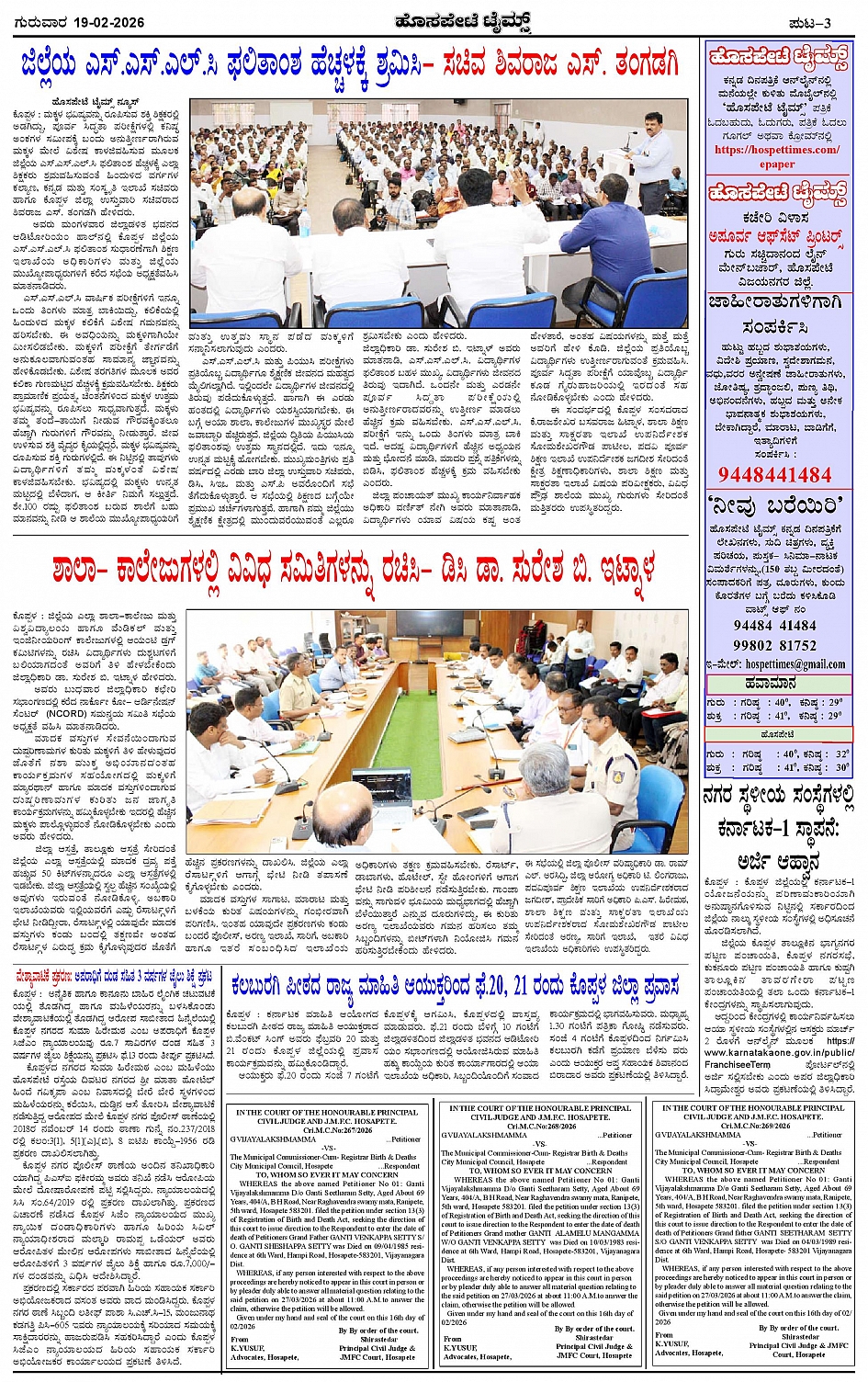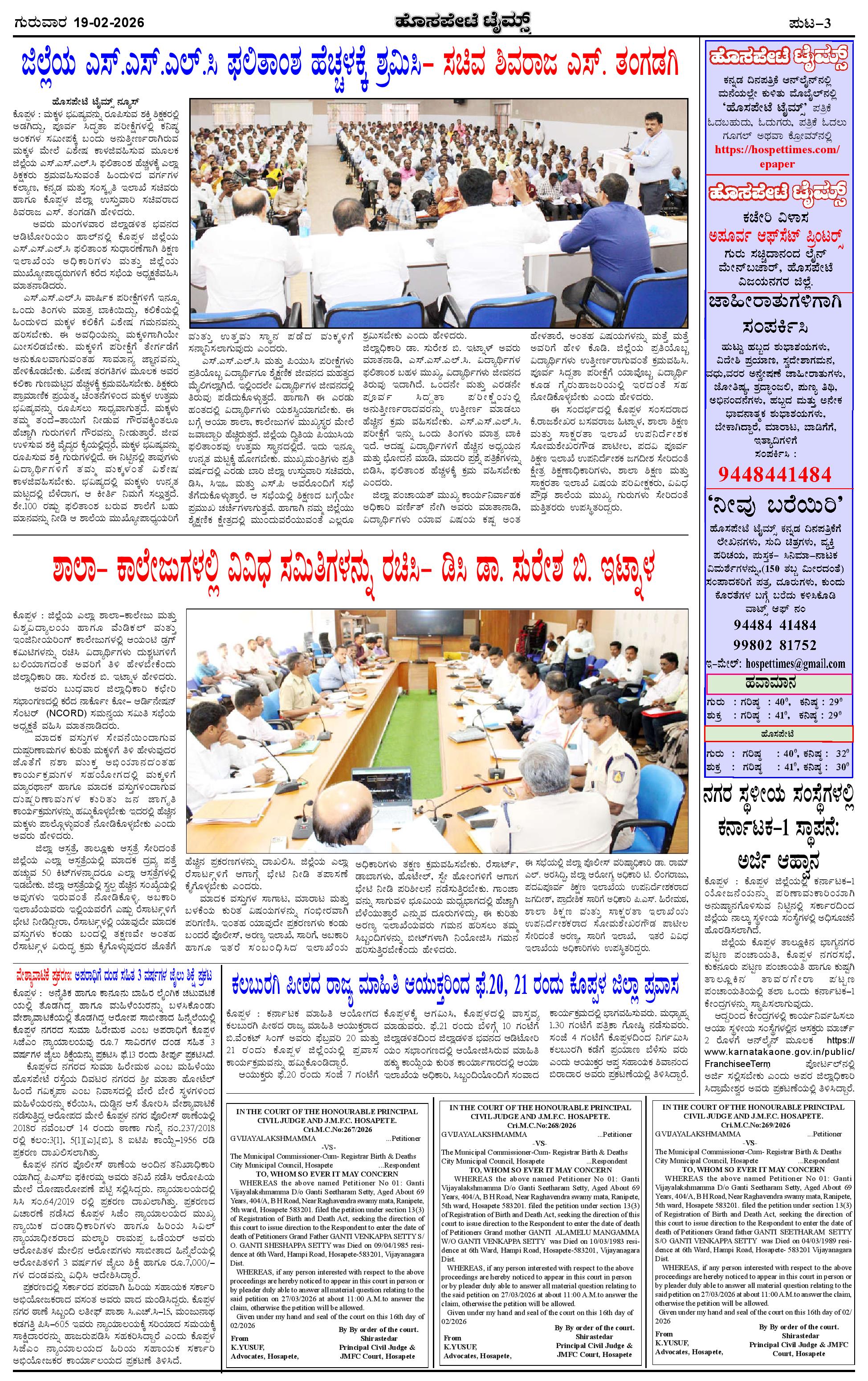 ಮಾಧ್ಯಮ ಅಕಾಡೆಮಿ ಪ್ರಶಸ್ತಿ ಪುರಸ್ಕೃತ 'ಹೊಸಪೇಟೆ ಟೈಮ್ಸ್' Page: 3 February 19, 2026 << First << 3 >> Last >> Page 1Page 2Page 3Page 4 × ಮಾಧ್ಯಮ ಅಕಾಡೆಮಿ ಪ್ರಶಸ್ತಿ ಪುರಸ್ಕೃತ 'ಹೊಸಪೇಟೆ ಟೈಮ್ಸ್' HPT-19022026--4-page-001HPT-19022026--4-page-002HPT-19022026--4-page-003HPT-19022026--4-page-004 << First << 3 >> Last >> HPT-19022026--4-page-001HPT-19022026--4-page-002HPT-19022026--4-page-003HPT-19022026--4-page-004 HPT-19022026--4-page-003