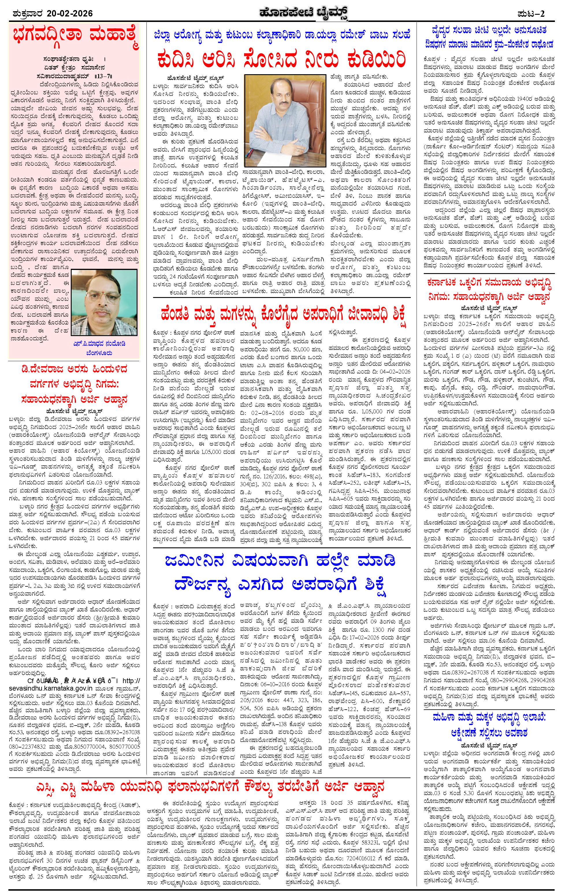 ಮಾಧ್ಯಮ ಅಕಾಡೆಮಿ ಪ್ರಶಸ್ತಿ ಪುರಸ್ಕೃತ 'ಹೊಸಪೇಟೆ ಟೈಮ್ಸ್' Page: 2 February 20, 2026 << First << 2 >> Last >> Page 1Page 2Page 3Page 4 × ಮಾಧ್ಯಮ ಅಕಾಡೆಮಿ ಪ್ರಶಸ್ತಿ ಪುರಸ್ಕೃತ 'ಹೊಸಪೇಟೆ ಟೈಮ್ಸ್' HPT-20022026--4-page-001HPT-20022026--4-page-002HPT-20022026--4-page-003HPT-20022026--4-page-004 << First << 2 >> Last >> HPT-20022026--4-page-001HPT-20022026--4-page-002HPT-20022026--4-page-003HPT-20022026--4-page-004 HPT-20022026--4-page-002