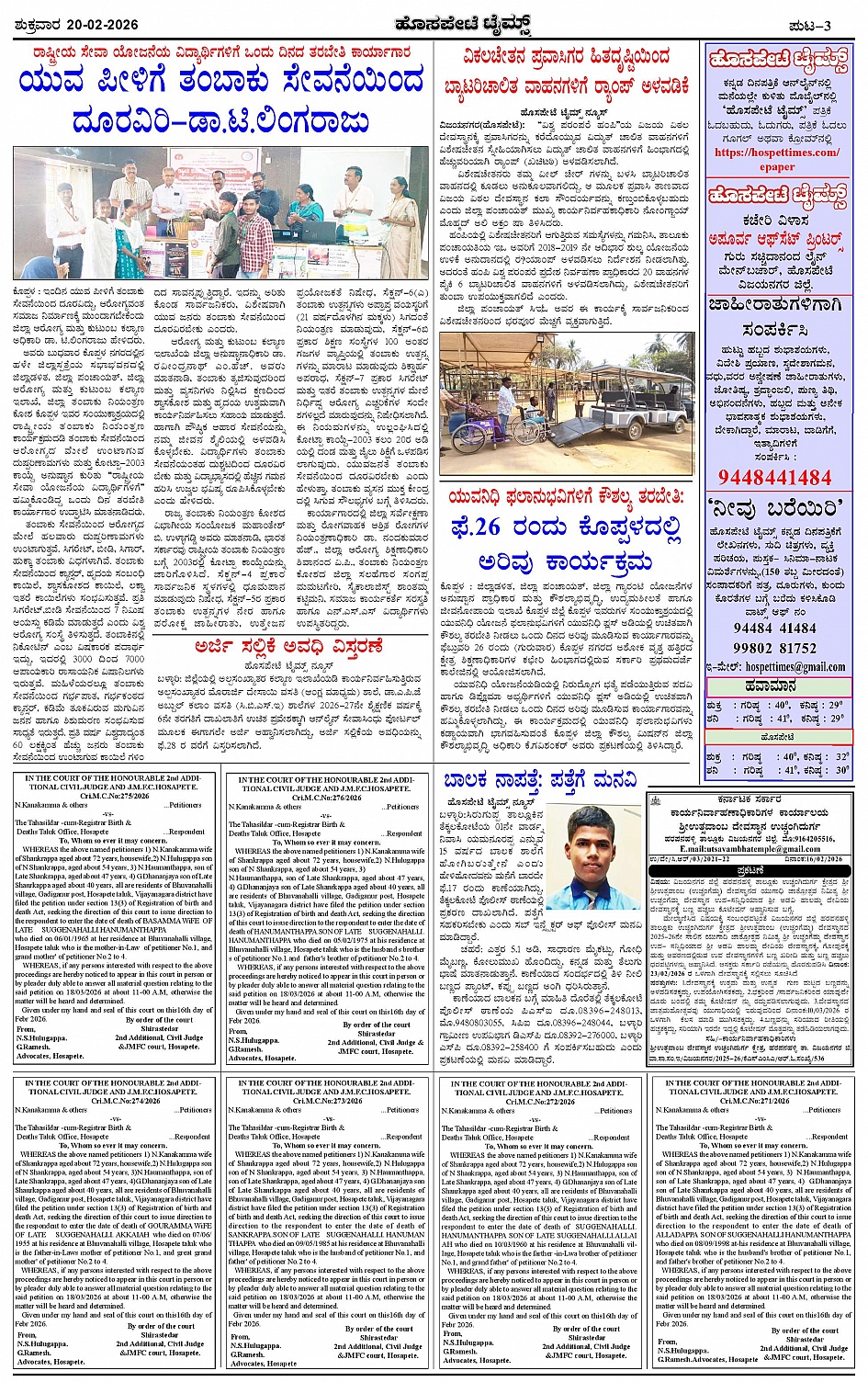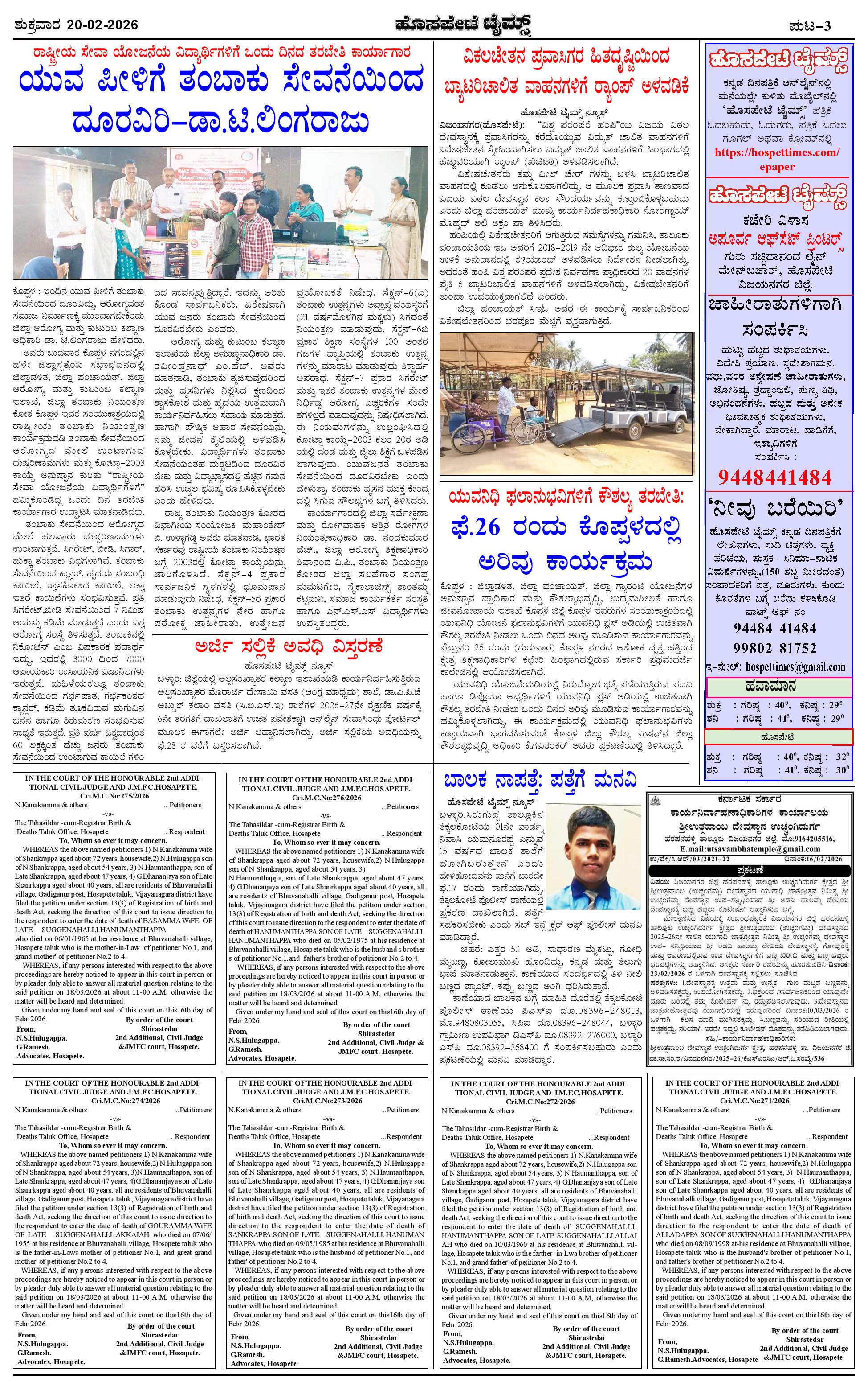 ಮಾಧ್ಯಮ ಅಕಾಡೆಮಿ ಪ್ರಶಸ್ತಿ ಪುರಸ್ಕೃತ 'ಹೊಸಪೇಟೆ ಟೈಮ್ಸ್' Page: 3 February 20, 2026 << First << 3 >> Last >> Page 1Page 2Page 3Page 4 × ಮಾಧ್ಯಮ ಅಕಾಡೆಮಿ ಪ್ರಶಸ್ತಿ ಪುರಸ್ಕೃತ 'ಹೊಸಪೇಟೆ ಟೈಮ್ಸ್' HPT-20022026--4-page-001HPT-20022026--4-page-002HPT-20022026--4-page-003HPT-20022026--4-page-004 << First << 3 >> Last >> HPT-20022026--4-page-001HPT-20022026--4-page-002HPT-20022026--4-page-003HPT-20022026--4-page-004 HPT-20022026--4-page-003