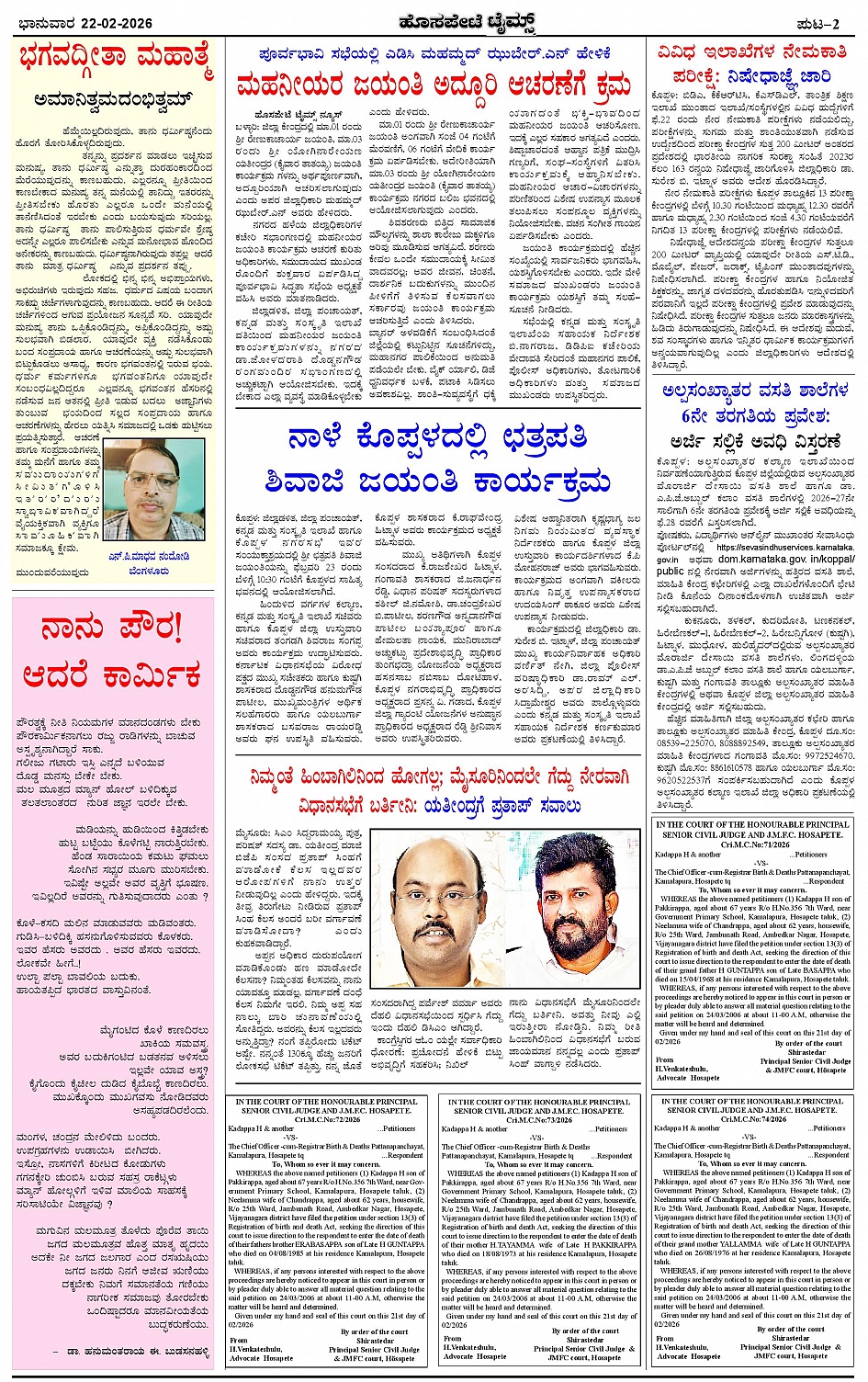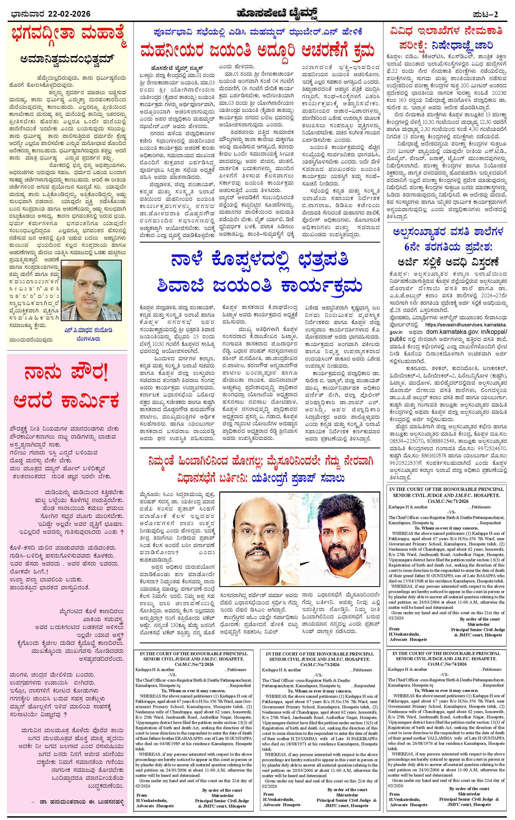 ಮಾಧ್ಯಮ ಅಕಾಡೆಮಿ ಪ್ರಶಸ್ತಿ ಪುರಸ್ಕೃತ 'ಹೊಸಪೇಟೆ ಟೈಮ್ಸ್' Page: 2 February 22, 2026 << First << 2 >> Last >> Page 1Page 2Page 3Page 4 × ಮಾಧ್ಯಮ ಅಕಾಡೆಮಿ ಪ್ರಶಸ್ತಿ ಪುರಸ್ಕೃತ 'ಹೊಸಪೇಟೆ ಟೈಮ್ಸ್' HPT-22022026--4 PAGE-page-001HPT-22022026--4 PAGE-page-002HPT-22022026--4 PAGE-page-003HPT-22022026--4 PAGE-page-004 << First << 2 >> Last >> HPT-22022026--4 PAGE-page-001HPT-22022026--4 PAGE-page-002HPT-22022026--4 PAGE-page-003HPT-22022026--4 PAGE-page-004 HPT-22022026--4 PAGE-page-002