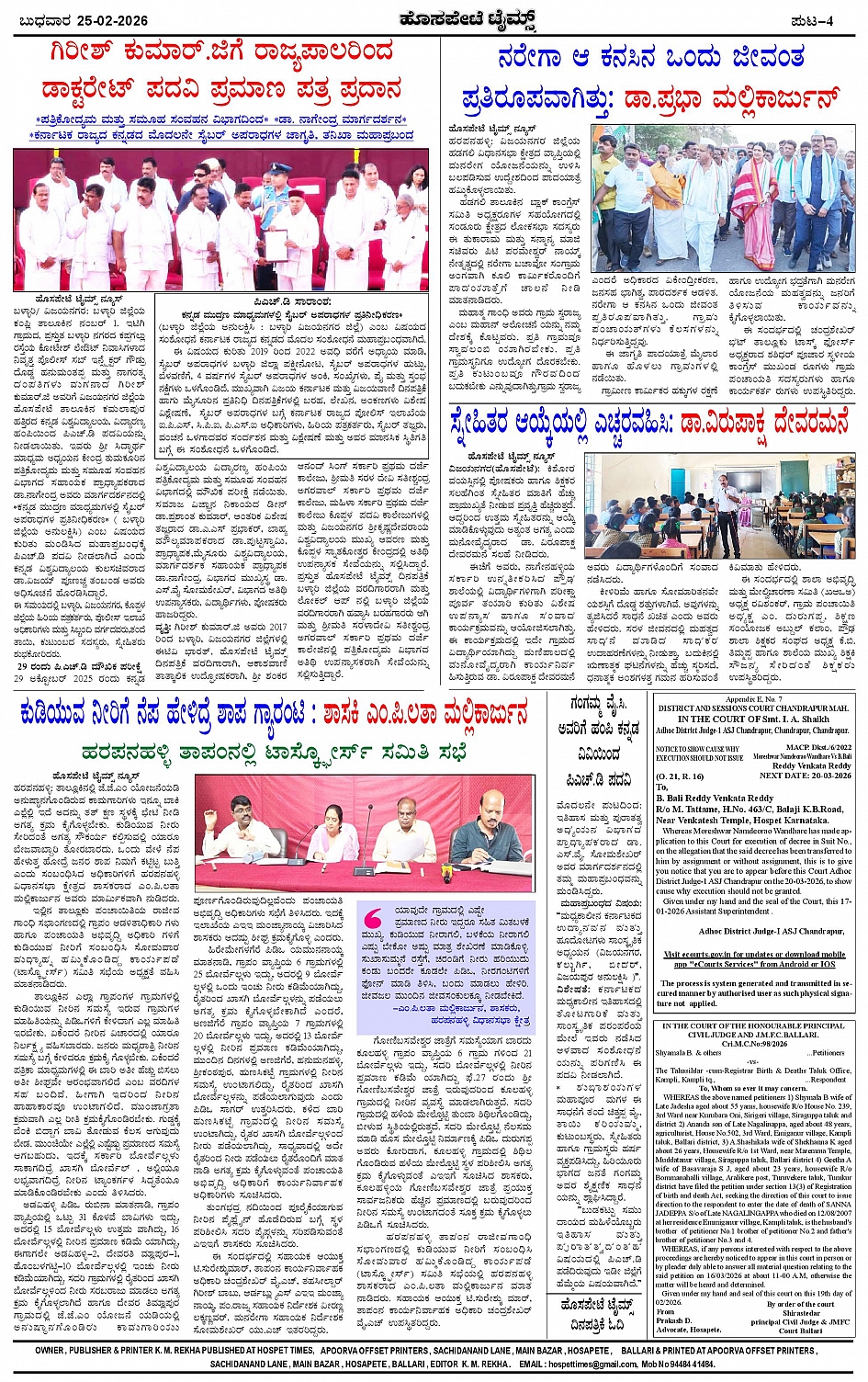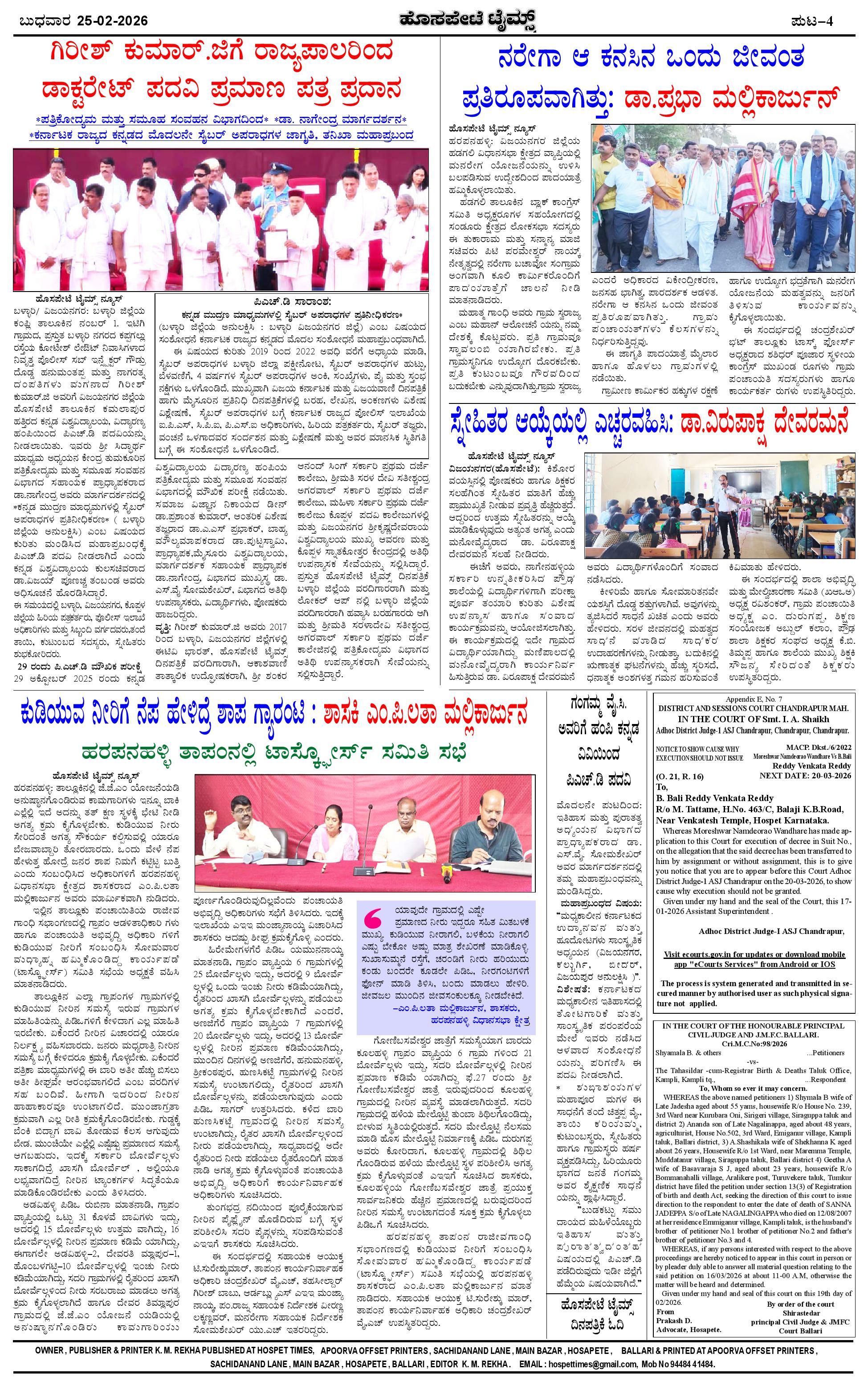 ಮಾಧ್ಯಮ ಅಕಾಡೆಮಿ ಪ್ರಶಸ್ತಿ ಪುರಸ್ಕೃತ 'ಹೊಸಪೇಟೆ ಟೈಮ್ಸ್' Page: 4 February 25, 2026 << First << 4 >> Last >> Page 1Page 2Page 3Page 4 × ಮಾಧ್ಯಮ ಅಕಾಡೆಮಿ ಪ್ರಶಸ್ತಿ ಪುರಸ್ಕೃತ 'ಹೊಸಪೇಟೆ ಟೈಮ್ಸ್' HPT-25022026--4-page-001HPT-25022026--4-page-002HPT-25022026--4-page-003HPT-25022026--4-page-004 << First << 4 >> Last >> HPT-25022026--4-page-001HPT-25022026--4-page-002HPT-25022026--4-page-003HPT-25022026--4-page-004 HPT-25022026--4-page-004