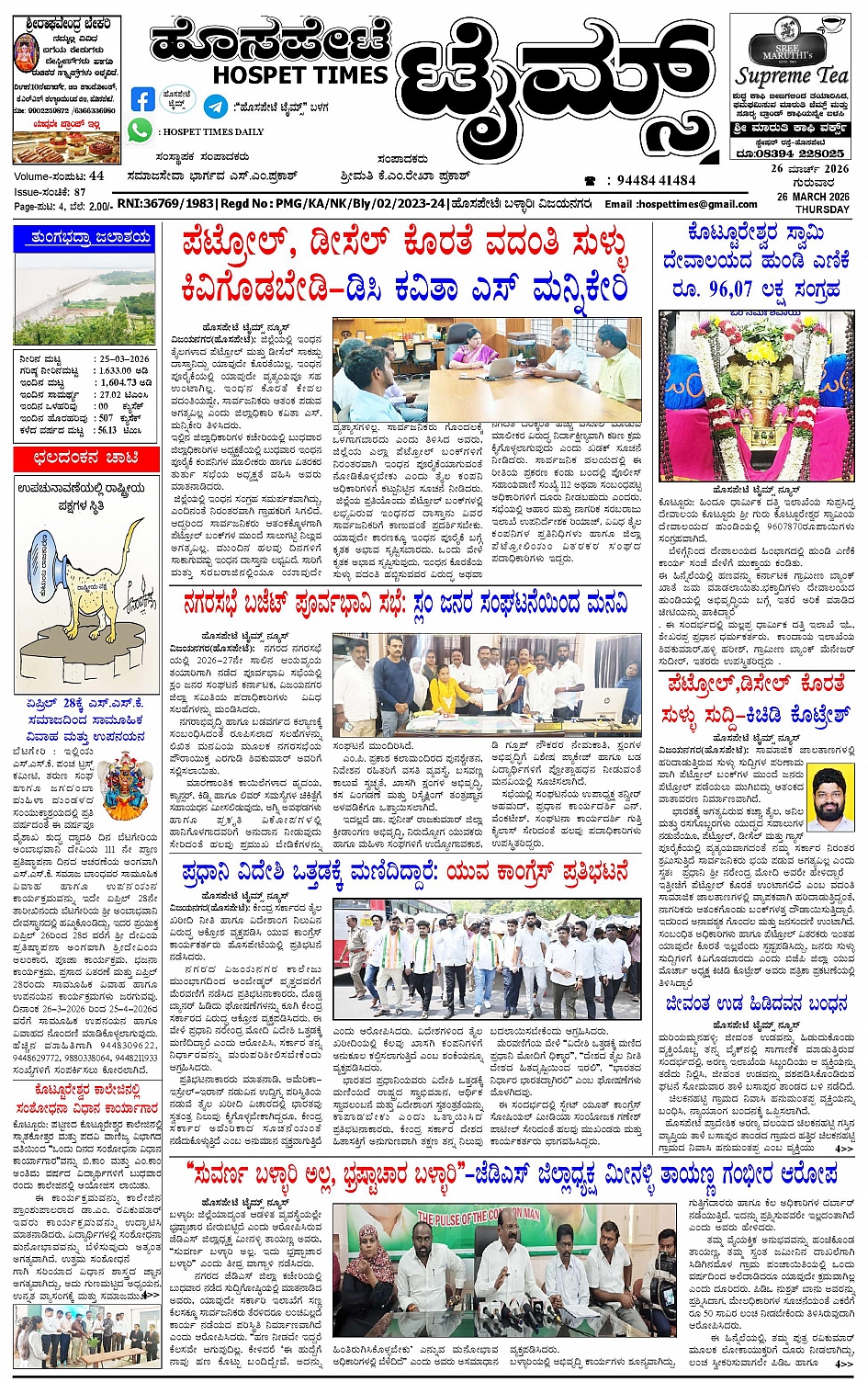 ಮಾಧ್ಯಮ ಅಕಾಡೆಮಿ ಪ್ರಶಸ್ತಿ ಪುರಸ್ಕೃತ 'ಹೊಸಪೇಟೆ ಟೈಮ್ಸ್' March 26, 2026 << First << 1 >> Last >> Page 1Page 2Page 3Page 4 × ಮಾಧ್ಯಮ ಅಕಾಡೆಮಿ ಪ್ರಶಸ್ತಿ ಪುರಸ್ಕೃತ 'ಹೊಸಪೇಟೆ ಟೈಮ್ಸ್' HPT-26032026--4-page-001HPT-26032026--4-page-002HPT-26032026--4-page-003HPT-26032026--4-page-004 << First << 1 >> Last >> HPT-26032026--4-page-001HPT-26032026--4-page-002HPT-26032026--4-page-003HPT-26032026--4-page-004 HPT-26032026--4-page-001