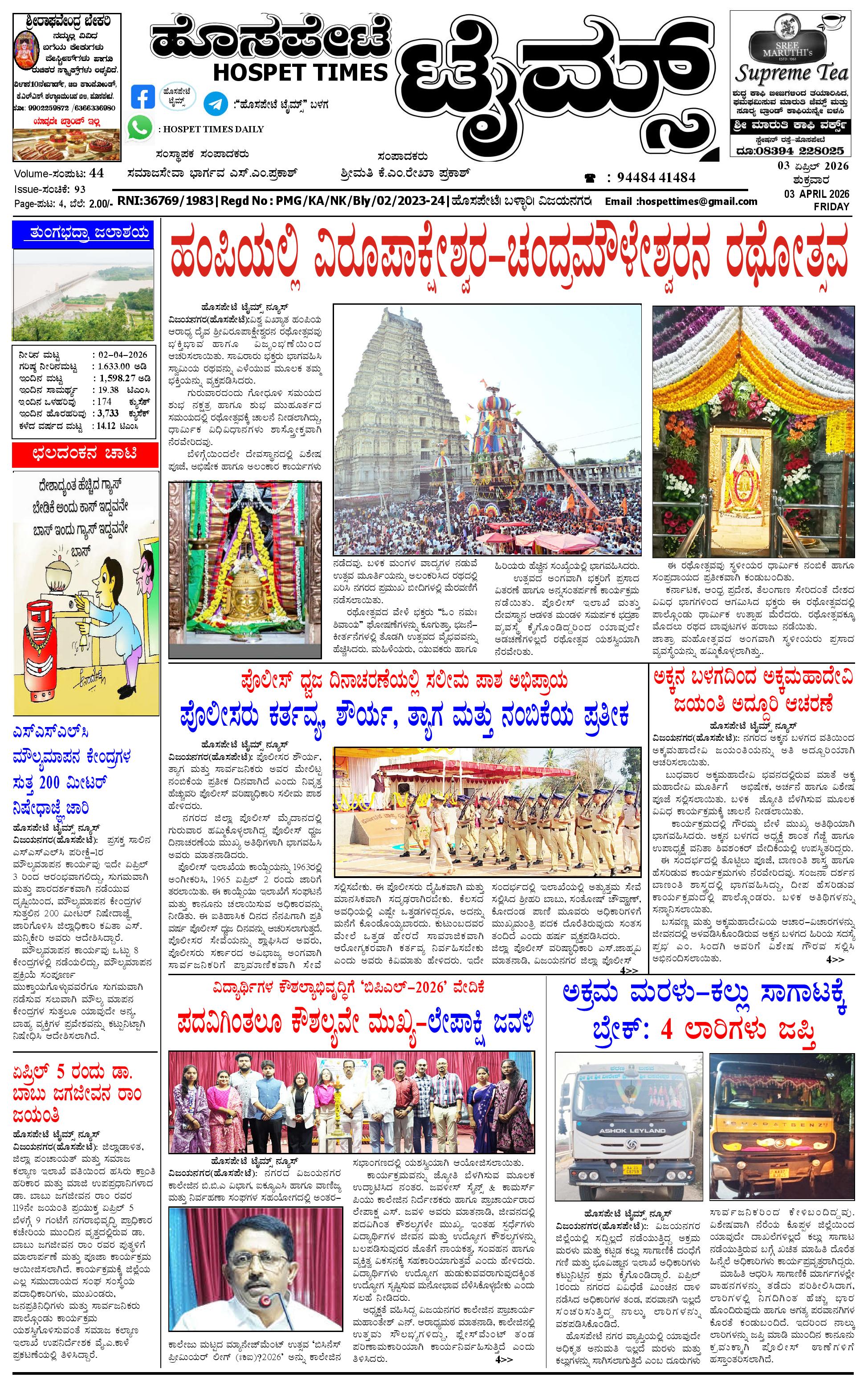 ಮಾಧ್ಯಮ ಅಕಾಡೆಮಿ ಪ್ರಶಸ್ತಿ ಪುರಸ್ಕೃತ 'ಹೊಸಪೇಟೆ ಟೈಮ್ಸ್' April 03, 2026 << First << 1 >> Last >> Page 1Page 2Page 3Page 4 × ಮಾಧ್ಯಮ ಅಕಾಡೆಮಿ ಪ್ರಶಸ್ತಿ ಪುರಸ್ಕೃತ 'ಹೊಸಪೇಟೆ ಟೈಮ್ಸ್' HPT-03042026--4-page-001HPT-03042026--4-page-002HPT-03042026--4-page-003HPT-03042026--4-page-004 << First << 1 >> Last >> HPT-03042026--4-page-001HPT-03042026--4-page-002HPT-03042026--4-page-003HPT-03042026--4-page-004 HPT-03042026--4-page-001