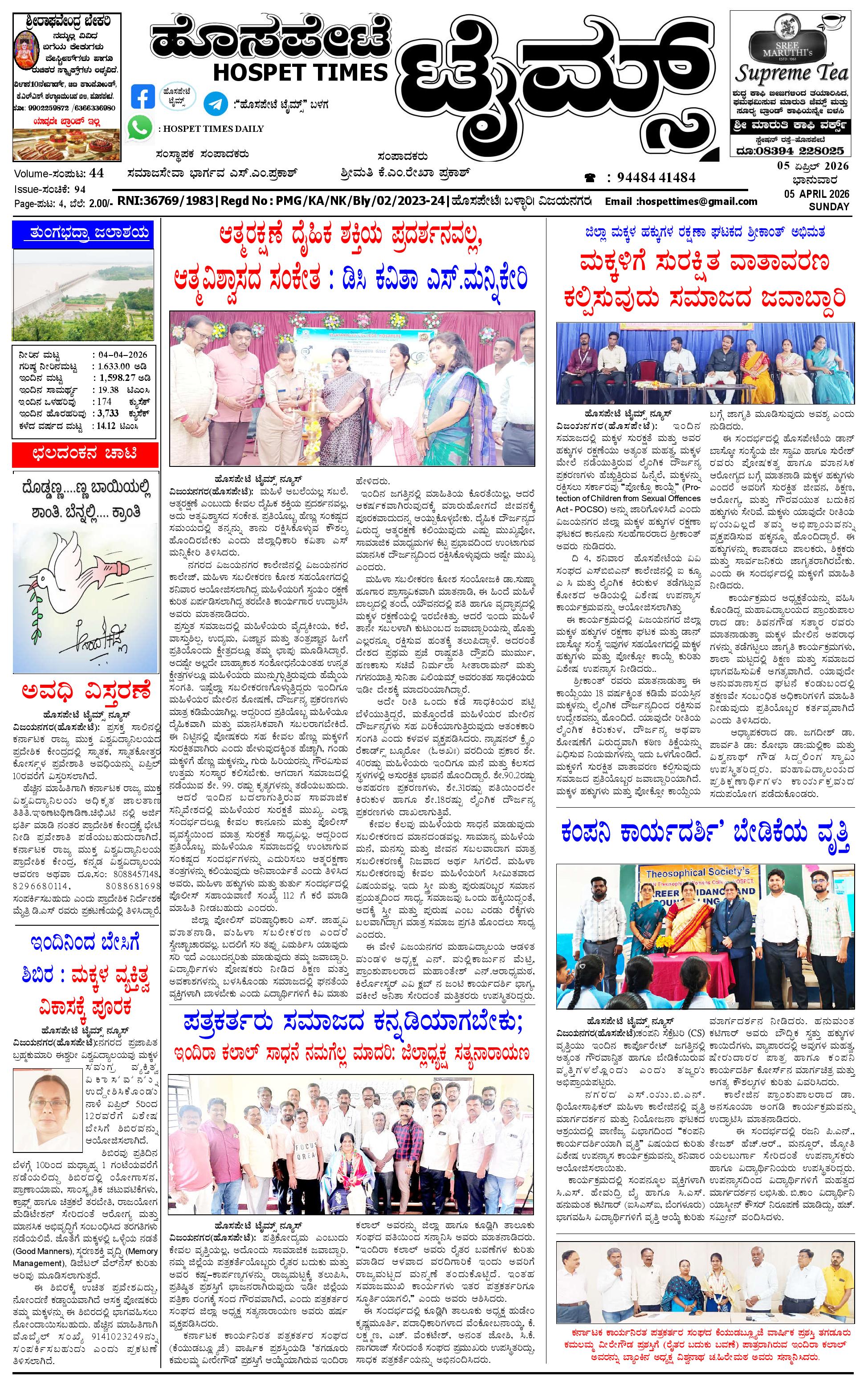 ಮಾಧ್ಯಮ ಅಕಾಡೆಮಿ ಪ್ರಶಸ್ತಿ ಪುರಸ್ಕೃತ 'ಹೊಸಪೇಟೆ ಟೈಮ್ಸ್' April 05, 2026 << First << 1 >> Last >> Page 1Page 2Page 3Page 4 × ಮಾಧ್ಯಮ ಅಕಾಡೆಮಿ ಪ್ರಶಸ್ತಿ ಪುರಸ್ಕೃತ 'ಹೊಸಪೇಟೆ ಟೈಮ್ಸ್' HPT-05042026--4-page-001HPT-05042026--4-page-002HPT-05042026--4-page-003HPT-05042026--4-page-004 << First << 1 >> Last >> HPT-05042026--4-page-001HPT-05042026--4-page-002HPT-05042026--4-page-003HPT-05042026--4-page-004 HPT-05042026--4-page-001