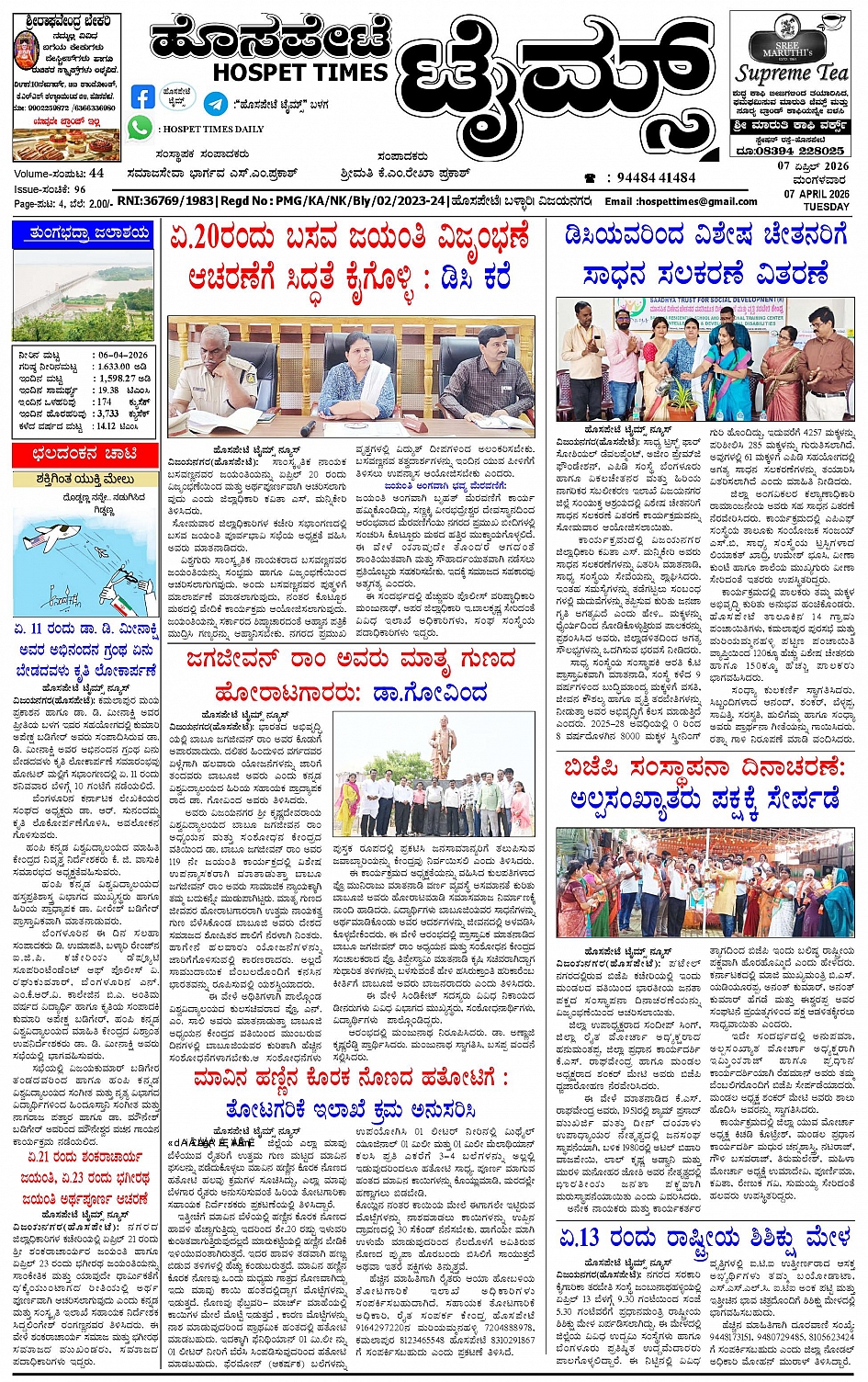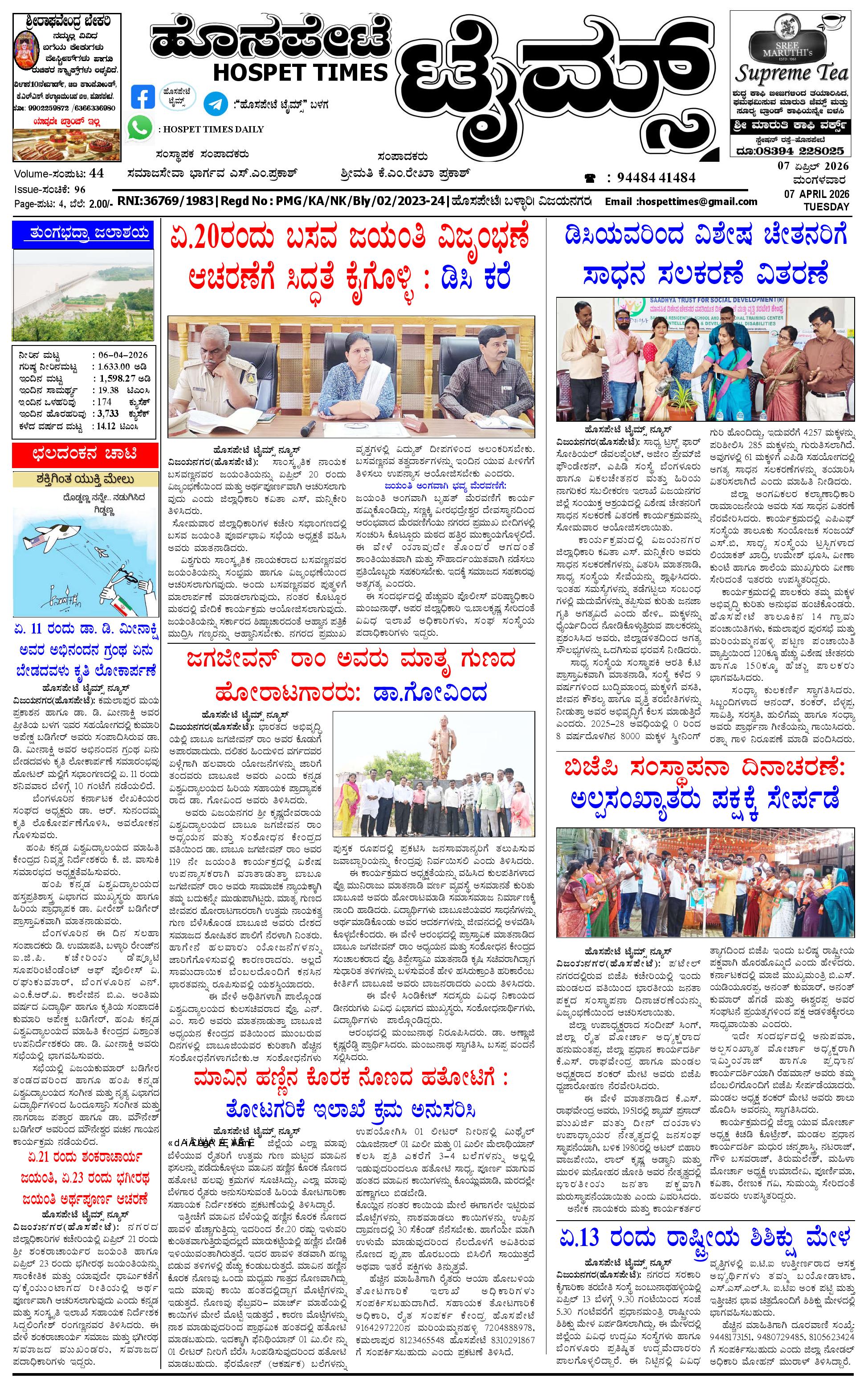 ಮಾಧ್ಯಮ ಅಕಾಡೆಮಿ ಪ್ರಶಸ್ತಿ ಪುರಸ್ಕೃತ 'ಹೊಸಪೇಟೆ ಟೈಮ್ಸ್' April 07, 2026 << First << 1 >> Last >> Page 1Page 2Page 3Page 4 × ಮಾಧ್ಯಮ ಅಕಾಡೆಮಿ ಪ್ರಶಸ್ತಿ ಪುರಸ್ಕೃತ 'ಹೊಸಪೇಟೆ ಟೈಮ್ಸ್' HPT-07042026-4-page-001HPT-07042026-4-page-002HPT-07042026-4-page-003HPT-07042026-4-page-004 << First << 1 >> Last >> HPT-07042026-4-page-001HPT-07042026-4-page-002HPT-07042026-4-page-003HPT-07042026-4-page-004 HPT-07042026-4-page-001