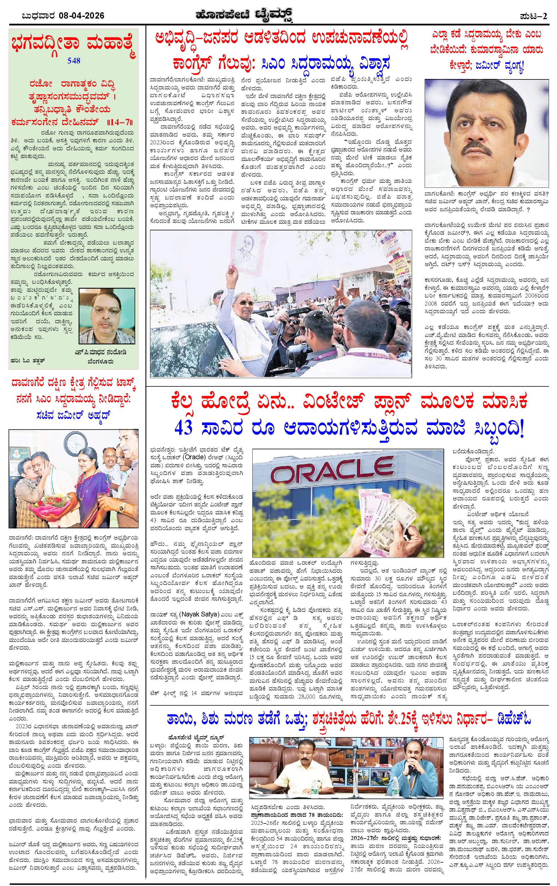 ಮಾಧ್ಯಮ ಅಕಾಡೆಮಿ ಪ್ರಶಸ್ತಿ ಪುರಸ್ಕೃತ 'ಹೊಸಪೇಟೆ ಟೈಮ್ಸ್' Page: 2 April 08, 2026 << First << 2 >> Last >> Page 1Page 2Page 3Page 4 × ಮಾಧ್ಯಮ ಅಕಾಡೆಮಿ ಪ್ರಶಸ್ತಿ ಪುರಸ್ಕೃತ 'ಹೊಸಪೇಟೆ ಟೈಮ್ಸ್' HPT-08042026-4-page-001HPT-08042026-4-page-002HPT-08042026-4-page-003HPT-08042026-4-page-004 << First << 2 >> Last >> HPT-08042026-4-page-001HPT-08042026-4-page-002HPT-08042026-4-page-003HPT-08042026-4-page-004 HPT-08042026-4-page-002