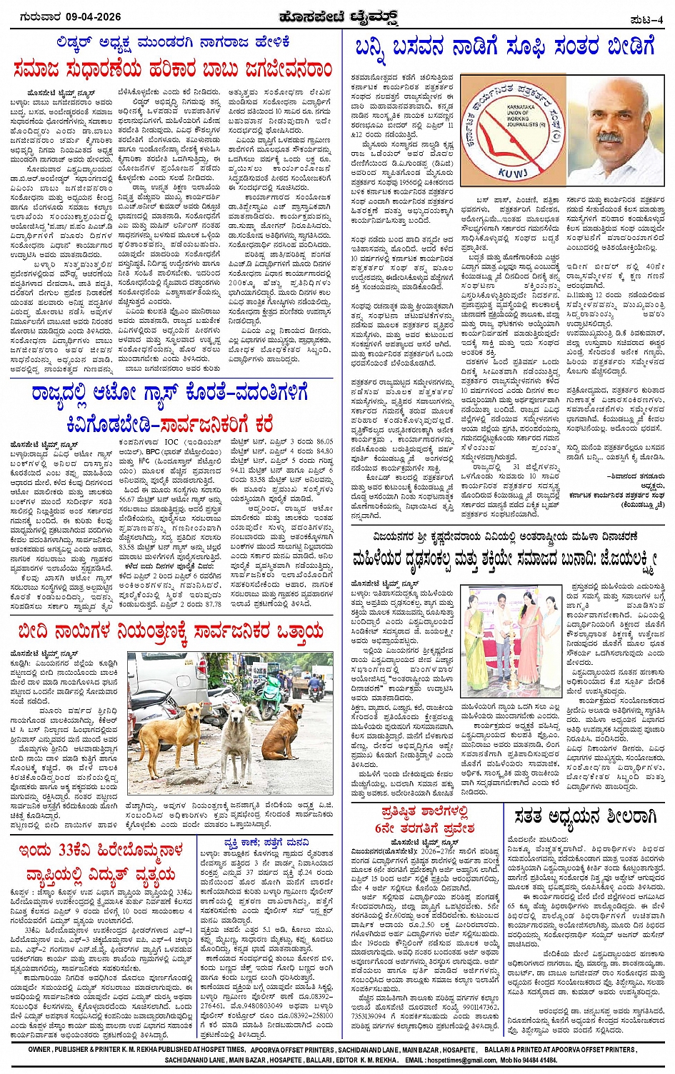 ಮಾಧ್ಯಮ ಅಕಾಡೆಮಿ ಪ್ರಶಸ್ತಿ ಪುರಸ್ಕೃತ 'ಹೊಸಪೇಟೆ ಟೈಮ್ಸ್' Page: 4 April 09, 2026 << First << 4 >> Last >> Page 1Page 2Page 3Page 4 × ಮಾಧ್ಯಮ ಅಕಾಡೆಮಿ ಪ್ರಶಸ್ತಿ ಪುರಸ್ಕೃತ 'ಹೊಸಪೇಟೆ ಟೈಮ್ಸ್' HPT-09042026--4-page-001HPT-09042026--4-page-002HPT-09042026--4-page-003HPT-09042026--4-page-004 << First << 4 >> Last >> HPT-09042026--4-page-001HPT-09042026--4-page-002HPT-09042026--4-page-003HPT-09042026--4-page-004 HPT-09042026--4-page-004