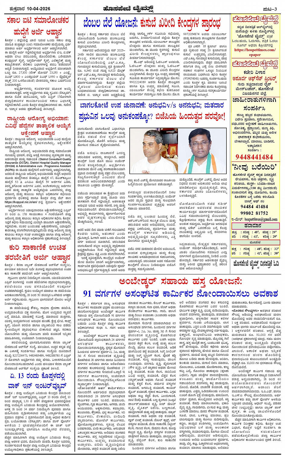 ಮಾಧ್ಯಮ ಅಕಾಡೆಮಿ ಪ್ರಶಸ್ತಿ ಪುರಸ್ಕೃತ 'ಹೊಸಪೇಟೆ ಟೈಮ್ಸ್' Page: 3 April 10, 2026 << First << 3 >> Last >> Page 1Page 2Page 3Page 4 × ಮಾಧ್ಯಮ ಅಕಾಡೆಮಿ ಪ್ರಶಸ್ತಿ ಪುರಸ್ಕೃತ 'ಹೊಸಪೇಟೆ ಟೈಮ್ಸ್' HPT-10042026--4-page-001HPT-10042026--4-page-002HPT-10042026--4-page-003HPT-10042026--4-page-004 << First << 3 >> Last >> HPT-10042026--4-page-001HPT-10042026--4-page-002HPT-10042026--4-page-003HPT-10042026--4-page-004 HPT-10042026--4-page-003