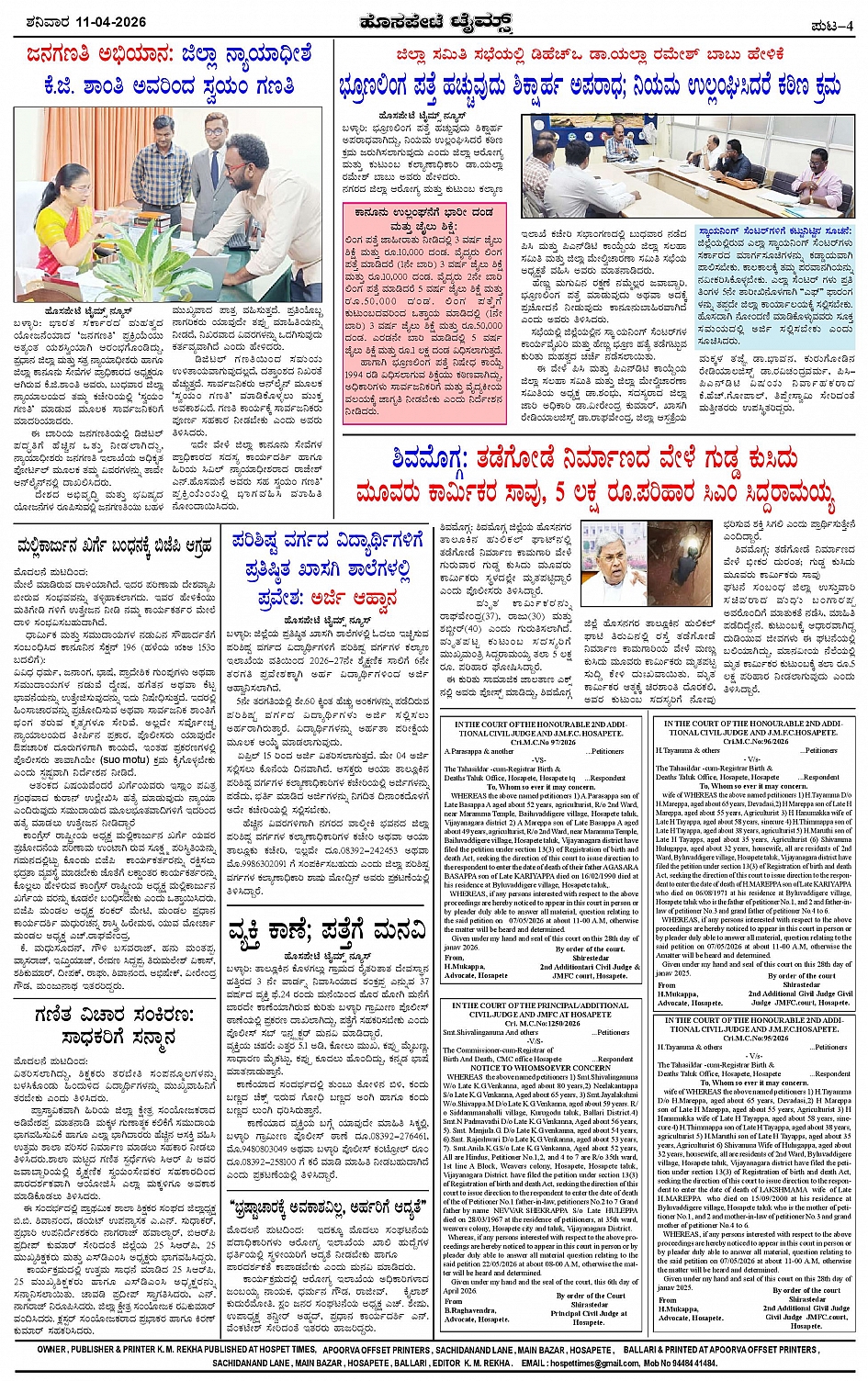 ಮಾಧ್ಯಮ ಅಕಾಡೆಮಿ ಪ್ರಶಸ್ತಿ ಪುರಸ್ಕೃತ 'ಹೊಸಪೇಟೆ ಟೈಮ್ಸ್' Page: 4 April 11, 2026 << First << 4 >> Last >> Page 1Page 2Page 3Page 4 × ಮಾಧ್ಯಮ ಅಕಾಡೆಮಿ ಪ್ರಶಸ್ತಿ ಪುರಸ್ಕೃತ 'ಹೊಸಪೇಟೆ ಟೈಮ್ಸ್' HPT-11042026-4-page-001HPT-11042026-4-page-002HPT-11042026-4-page-003HPT-11042026-4-page-004 << First << 4 >> Last >> HPT-11042026-4-page-001HPT-11042026-4-page-002HPT-11042026-4-page-003HPT-11042026-4-page-004 HPT-11042026-4-page-004